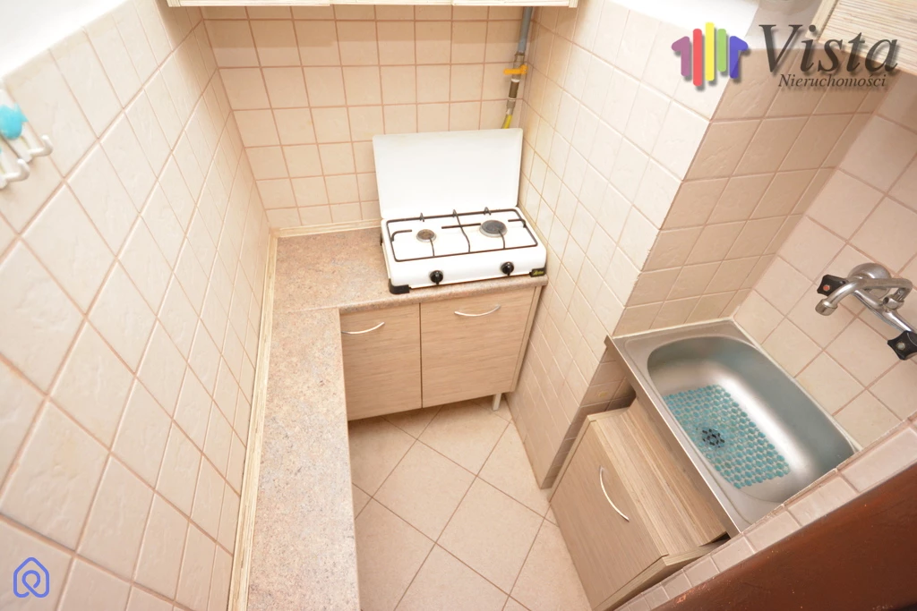 Na powierzchnię użytkową składają się ustawny pokój, ciemna kuchnia, przedpokój oraz łazienka z toaletą. Mieszkanie z balkonem, niskie koszty utrzymania.