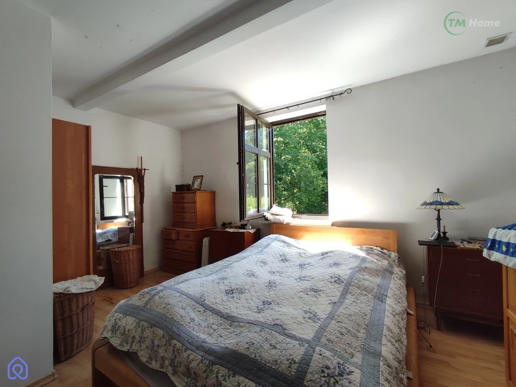 - salon z kominkiem połączony z jadalnią i kuchnia z przejściem do dolnej części młyna i drugim wyjście na zewnątrz obiektu, sypialnia i łazienka,
