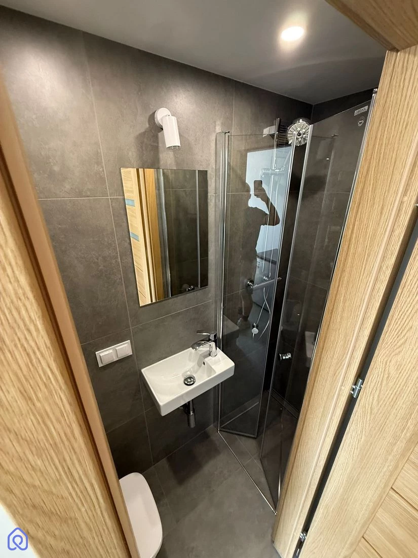elegancką, w pełni wykończoną łazienkę z prysznicem