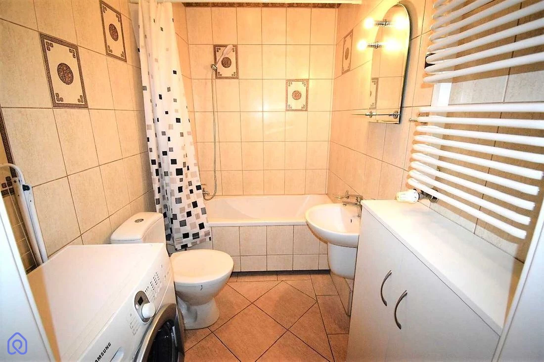 Okna wychodzą na wewnętrzne, zielone podwórko – mieszkanie jest ciche.