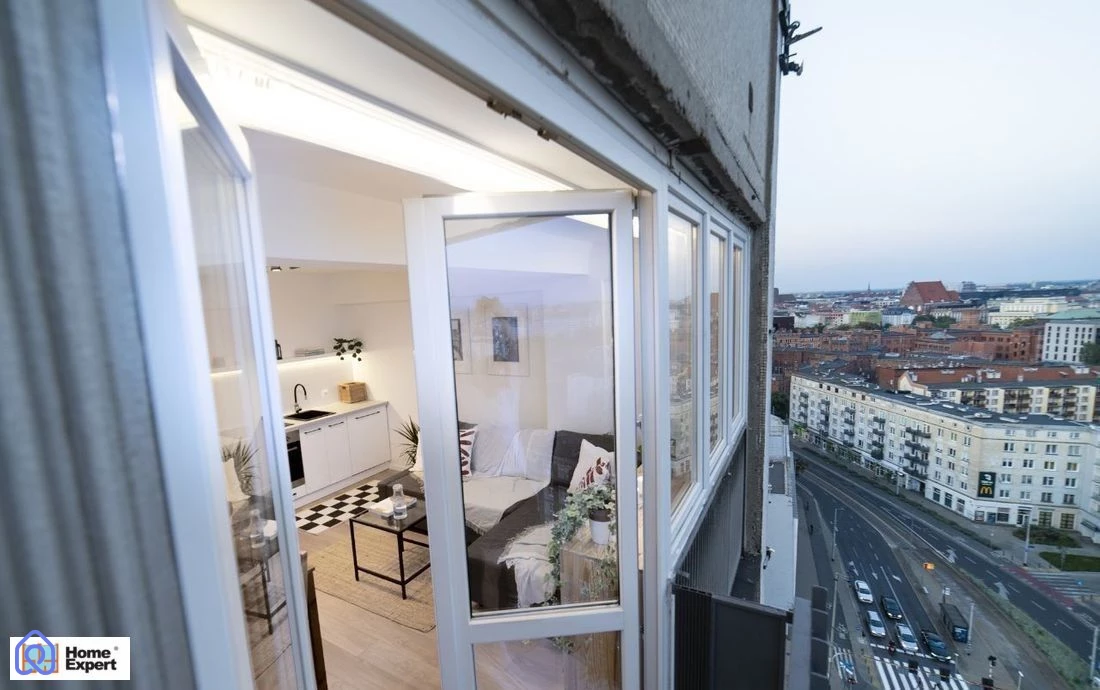 Dodatkowo balkon z widokiem na panoramę miasta.