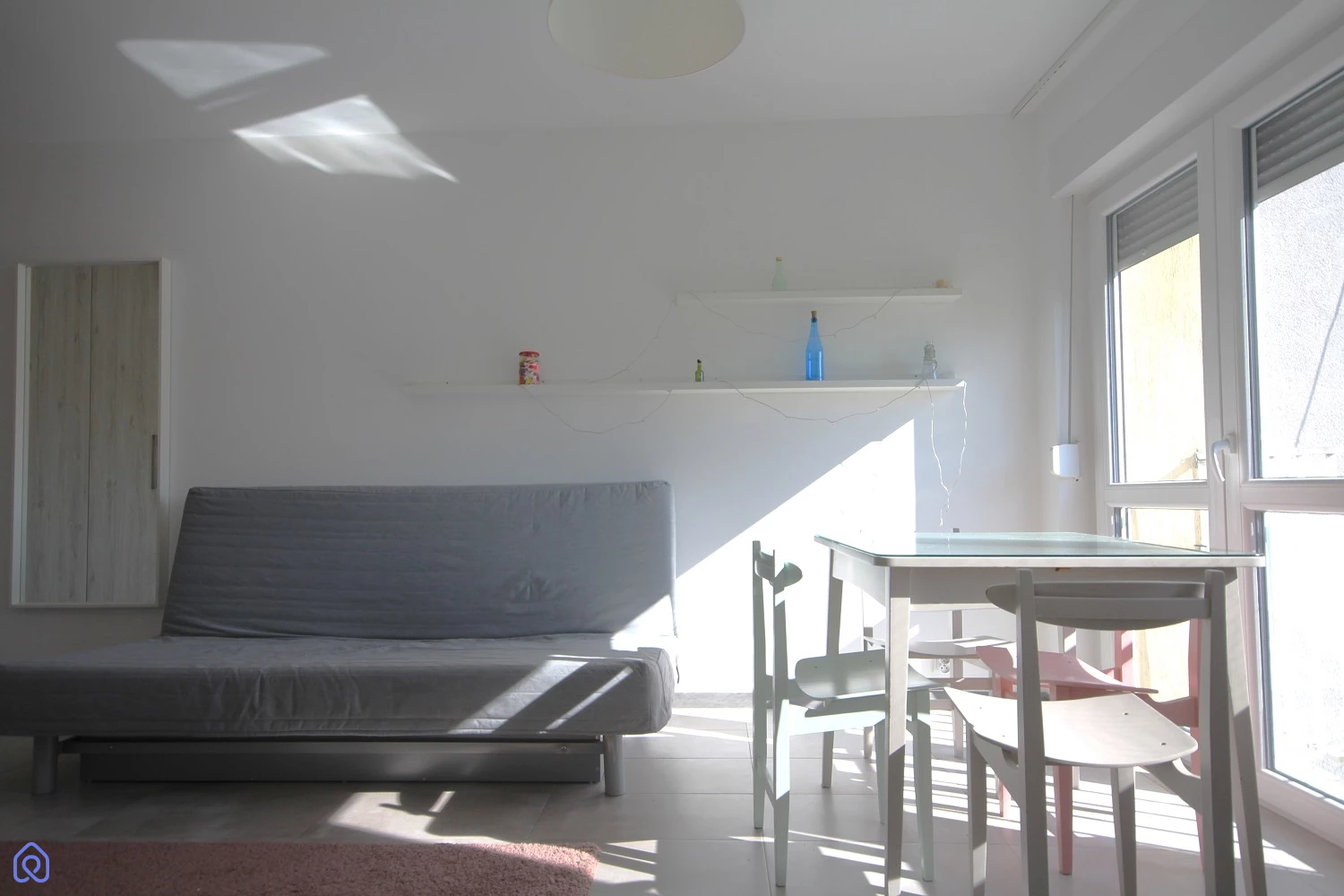 Okna wychodzą na wewnętrzne podwórko – mieszkanie jest ciche i spokojne.