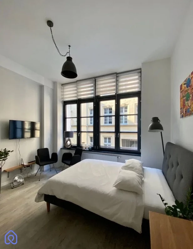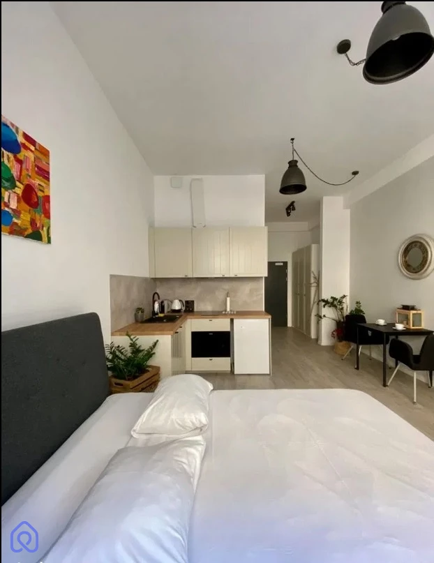 Studio w loftowym klimacie, w kompletnie odnowionym budynku starej drukarni pieniędzy, z sufitami o wysokości 3,4m.