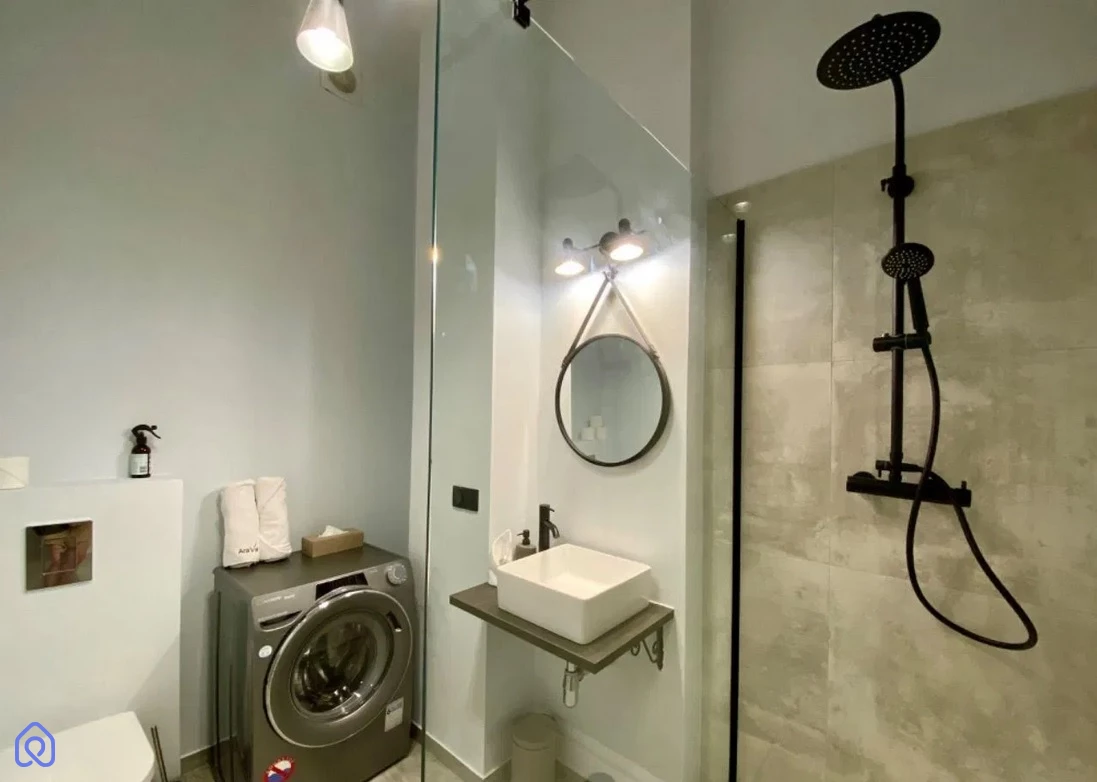 Zaprojektowane do wygodnego mieszkania, z pralką, z dużą kabiną prysznicową z deszczownicą.