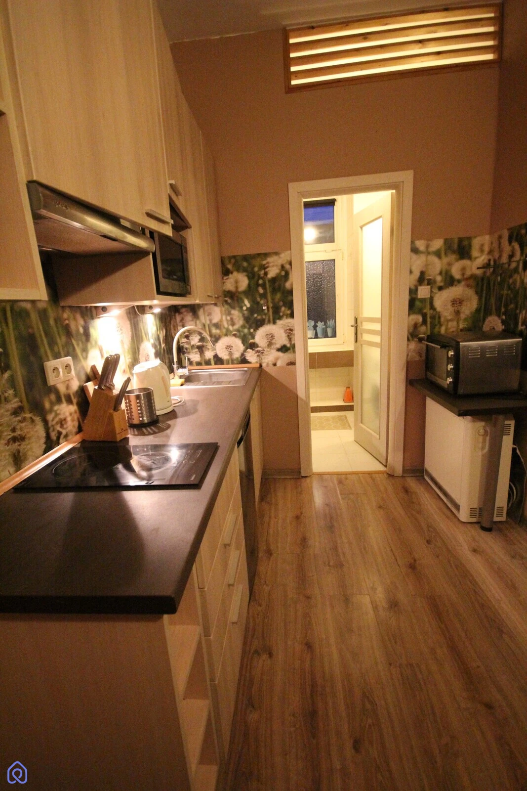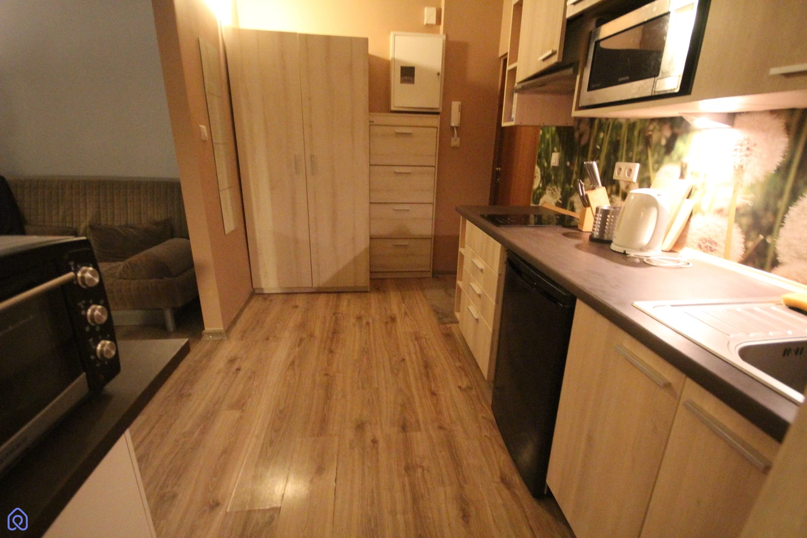 W pełni wyposażona ( naczynia, sztućce, garnki, suszarka, deska do prasowania, żelazko, telewizor, lodówka, pralka, kuchenka mikrofalowa, piekarnik, płyta indukcyjna).