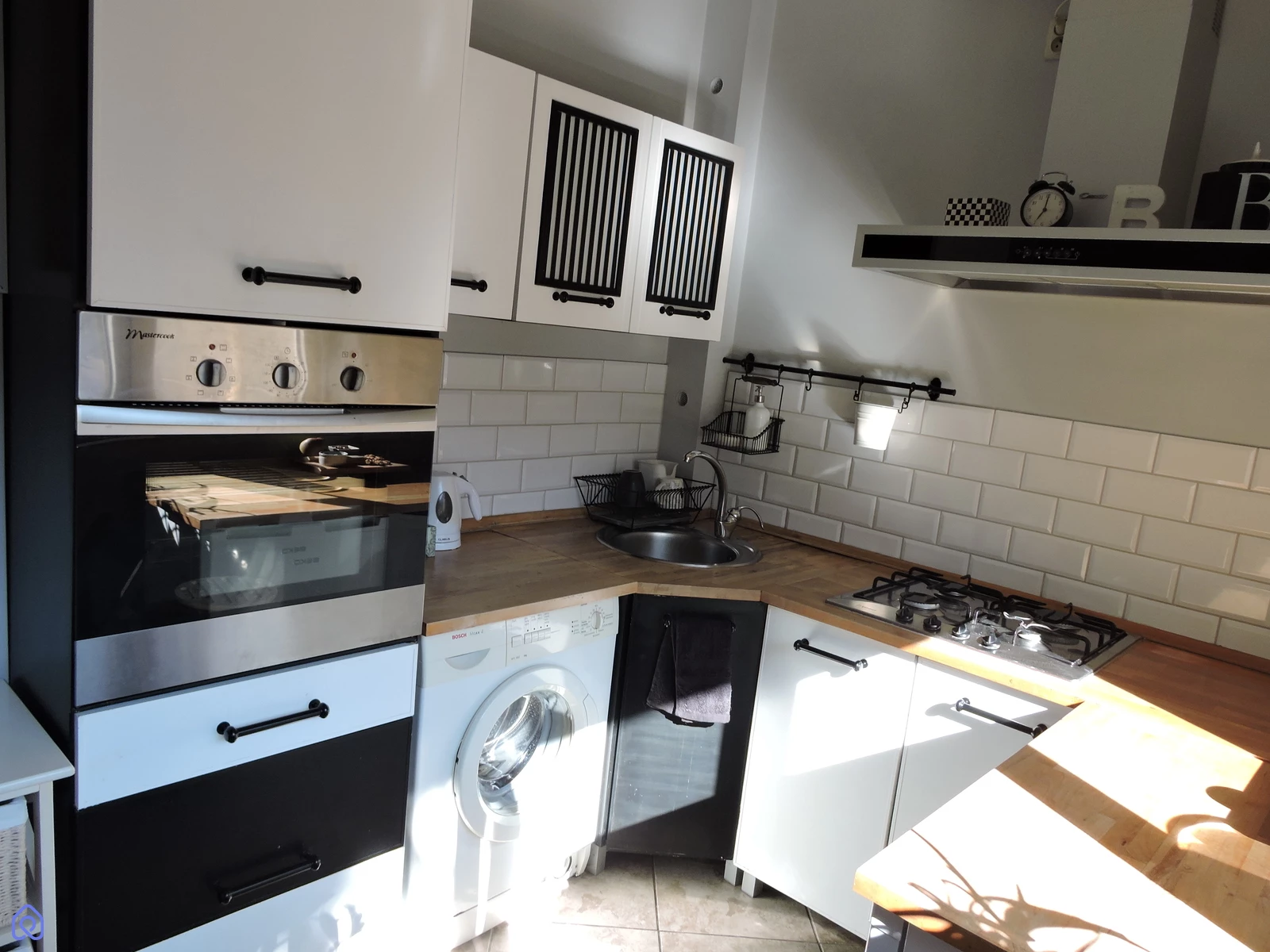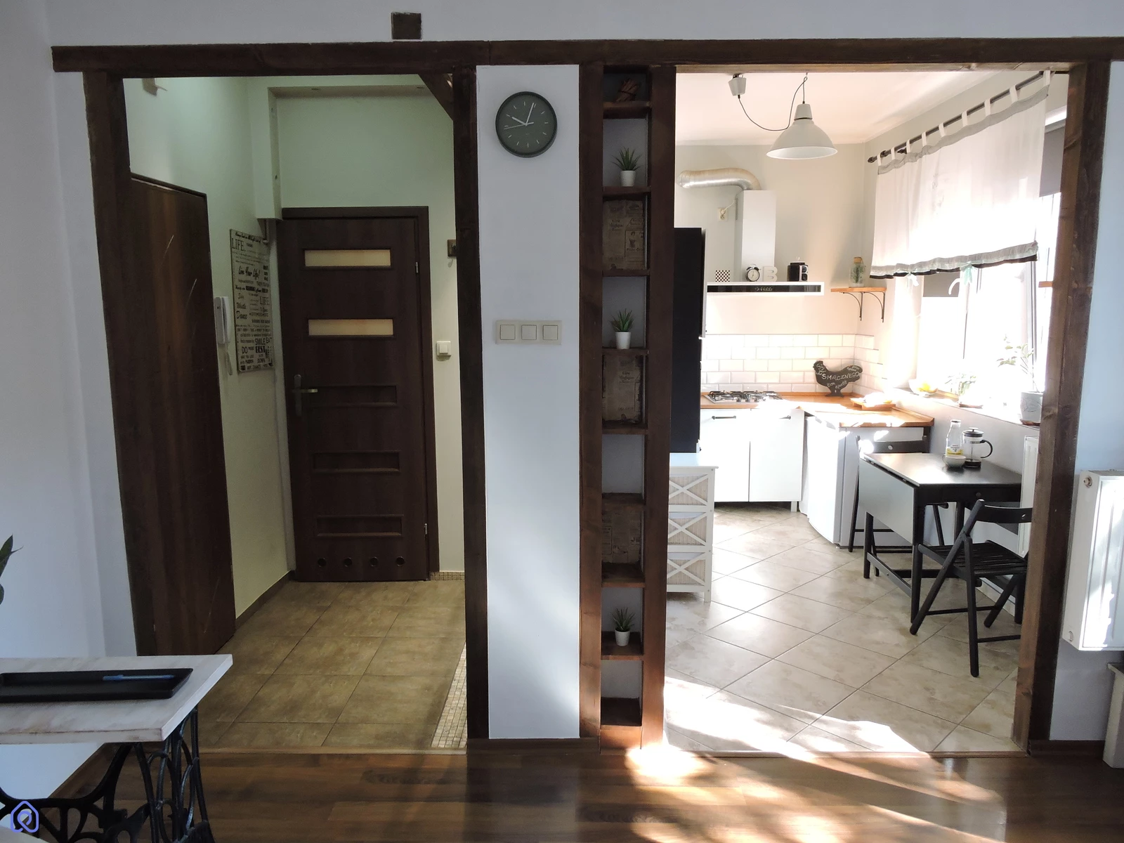 przestronnej kuchni, łazienki i przedpokoju z zabudowaną.