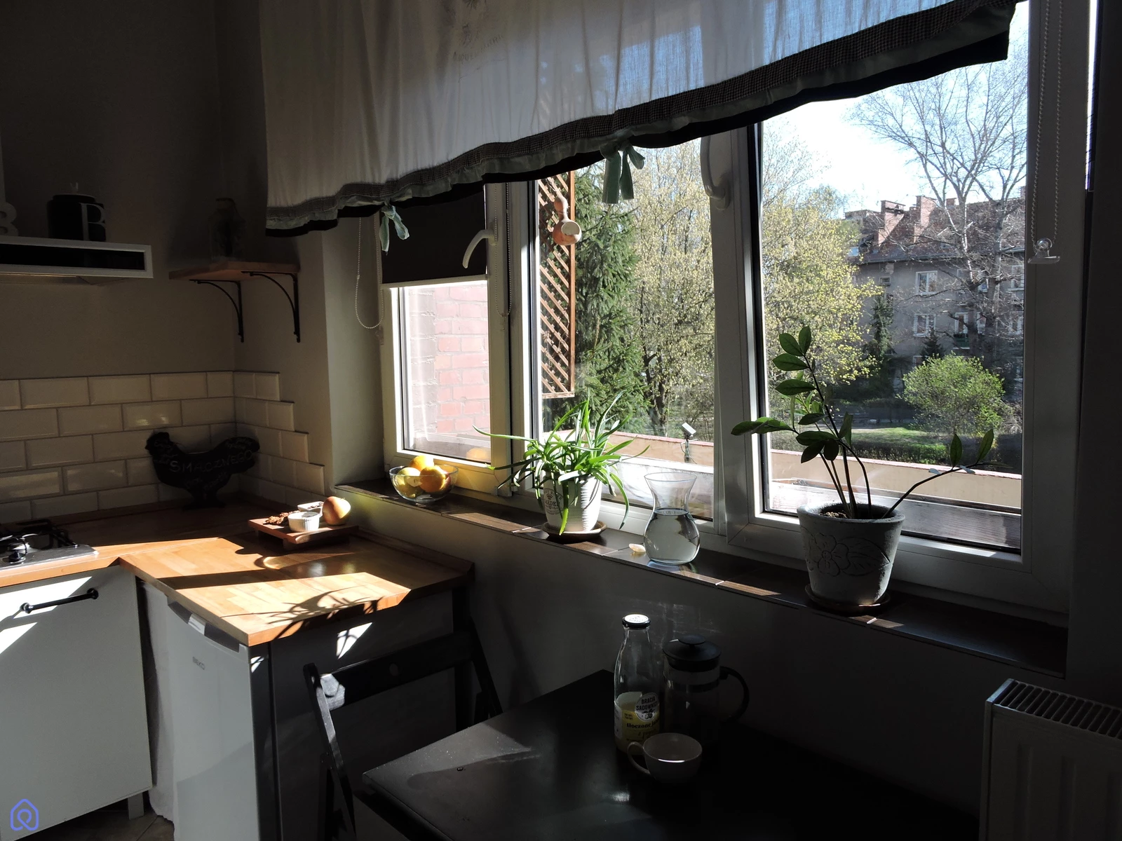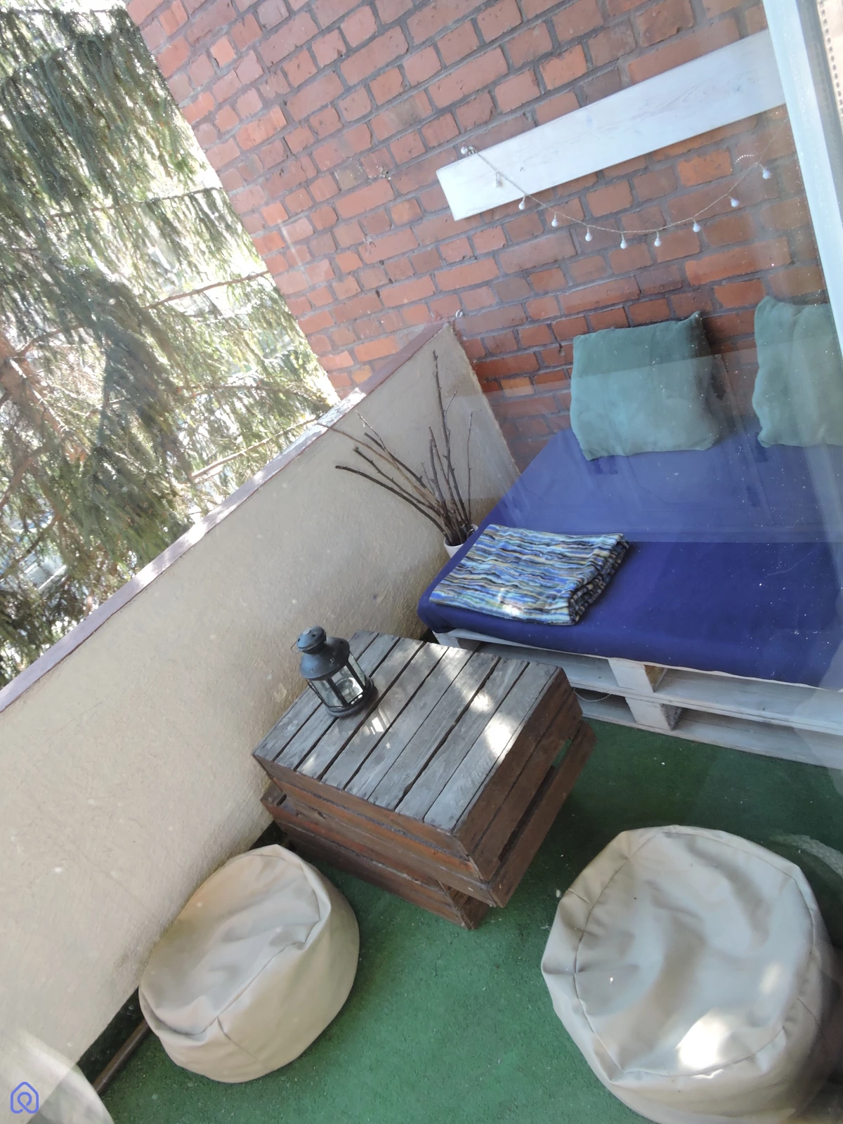 - Duży balkon z miejscem do wypoczynku i roślinami. Przytulna przestrzeń do wypoczynku po ciężkim dniu pracy lub porannej kawy na świeżym powietrzu.