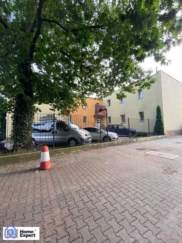Teren wokół bloku ogrodzony, wiele miejsc postojowych.