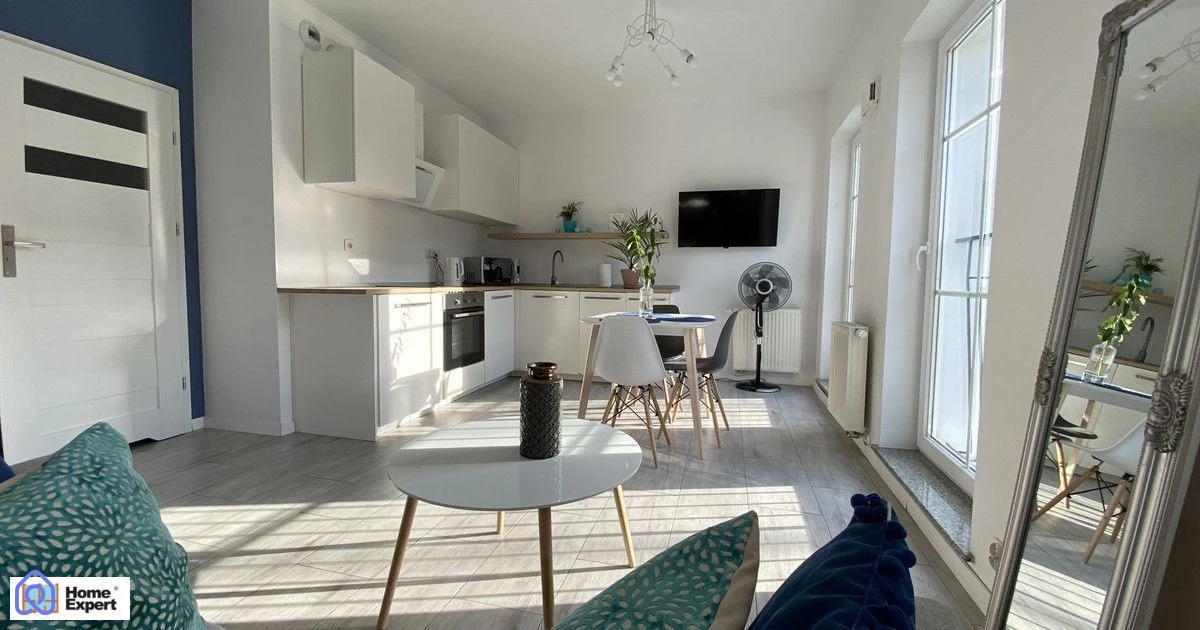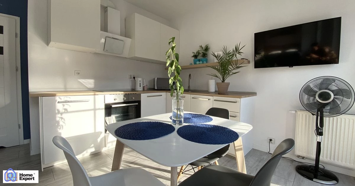 Mieszkanie kompletnie wyposażone, a cena obejmuje wszystkie widoczne na zdjęciach meble i wyposażenie, również ruchome, łącznie z pralką i telewizorem.