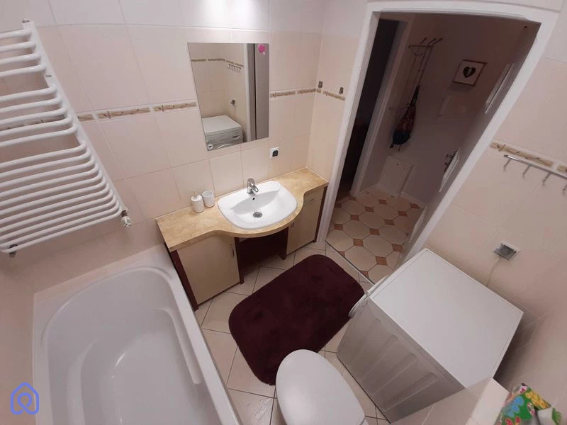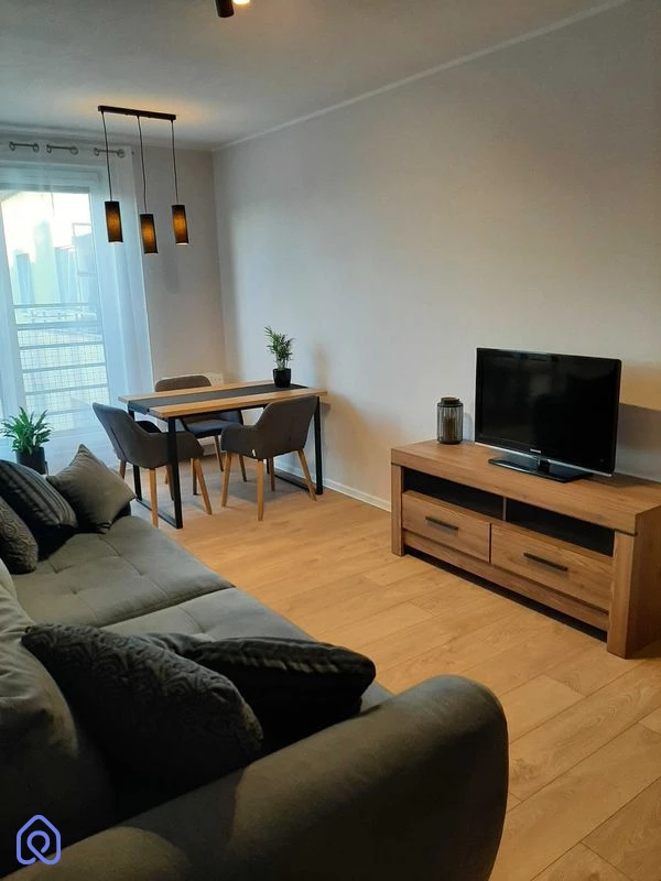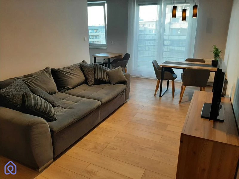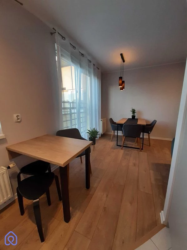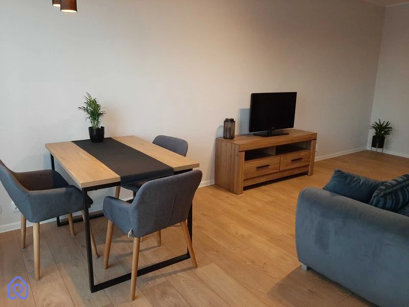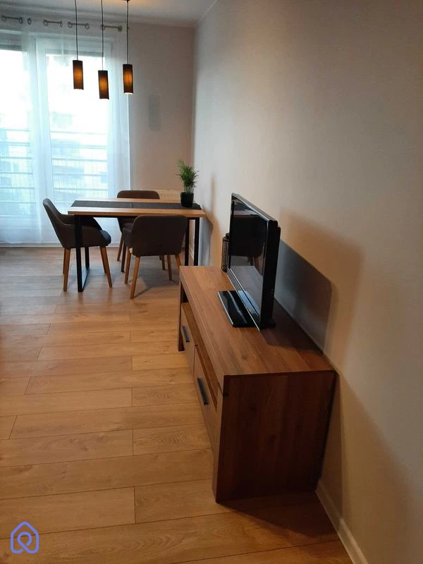 Mieszkanie, usytuowane od strony podwórka, gwarantuje spokój. W 2022 roku przeszło remont kuchni i salonu, co nadaje mu nowoczesny charakter. Pełne wyposażenie obejmuje m.in. kompletną kuchnię, rozkładaną kanapę, komodę, stół z krzesłami, a także niezbędne elementy w łazience i przedpokoju.