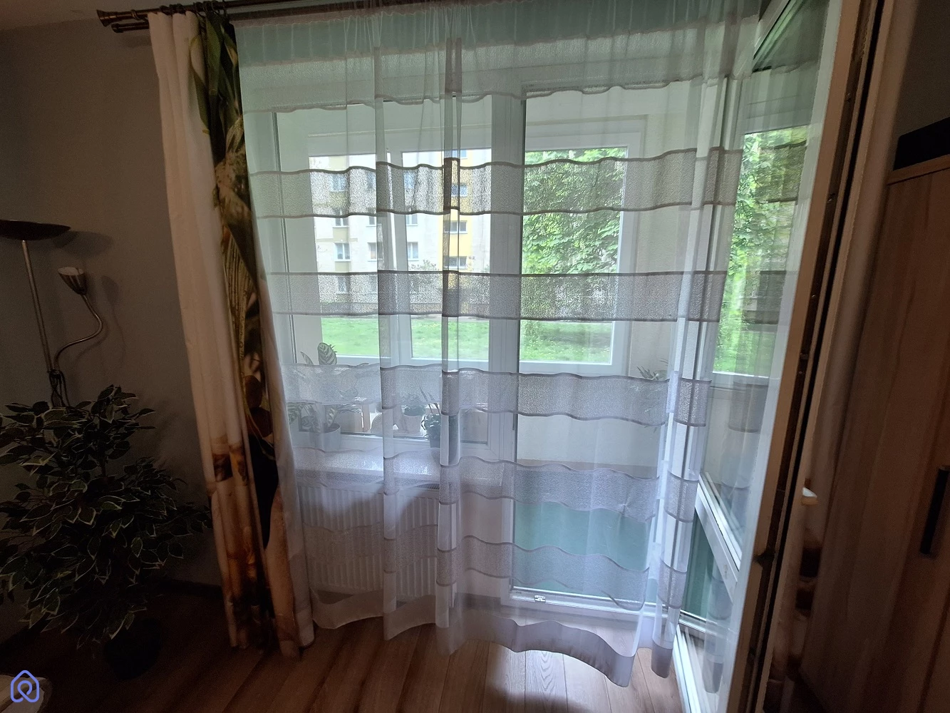 z widokiem na zieleń. Podwójny system okien zapewnia izolację termiczną.