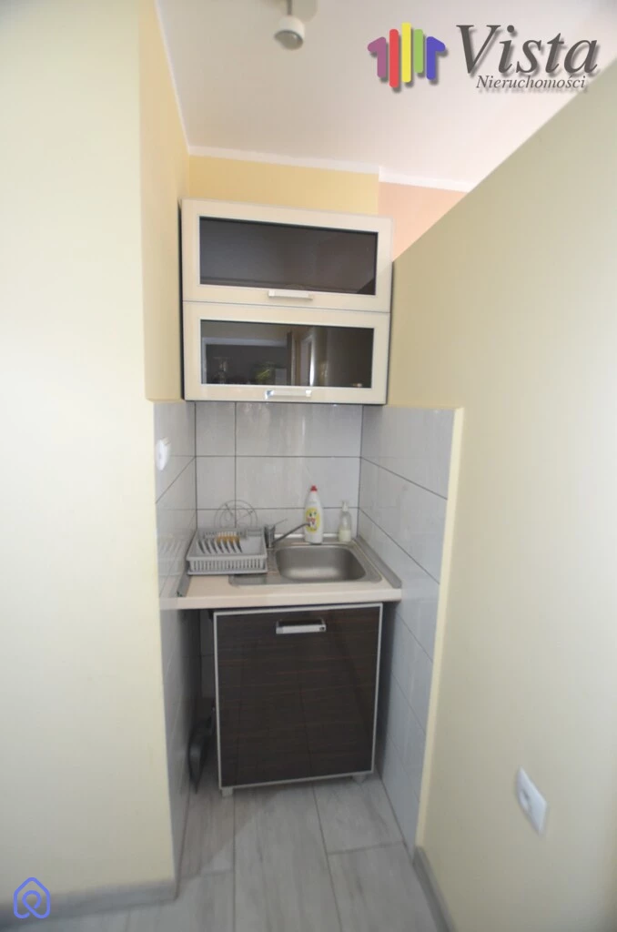 Mieszkanie składa się z dużego pokoju, niewielkiej sypialni, aneksu kuchennego, łazienki z toaletą oraz przedpokoju.