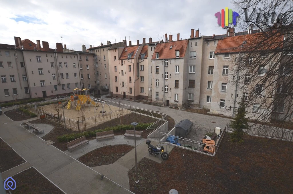 Za budynkiem znajduje się wyremontowane podwórko z placem zabaw.