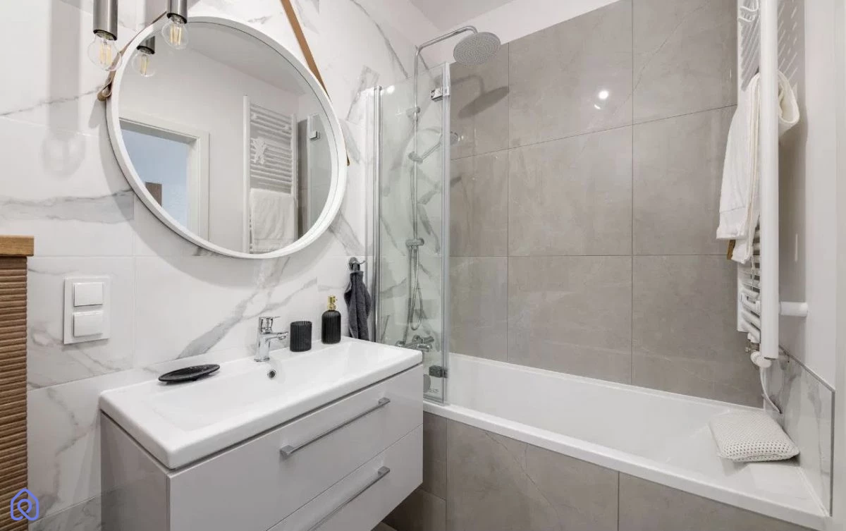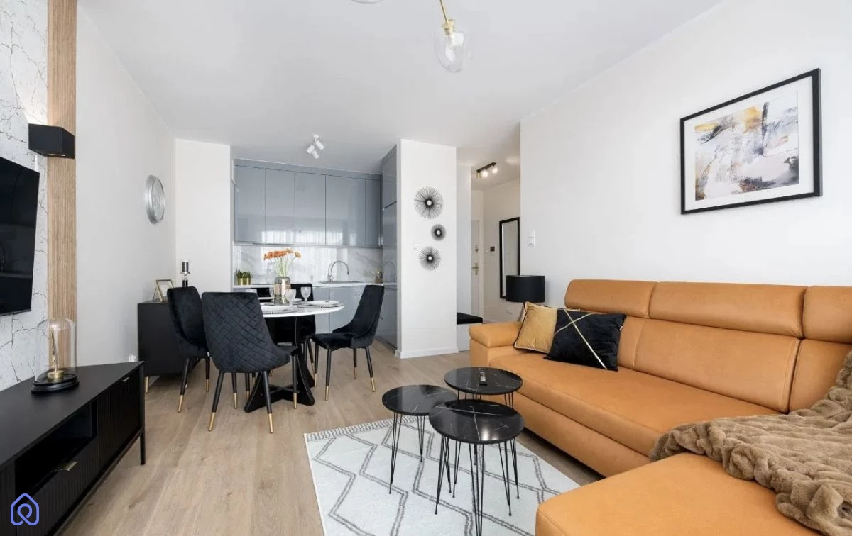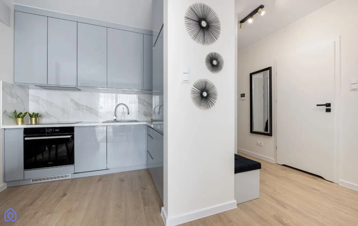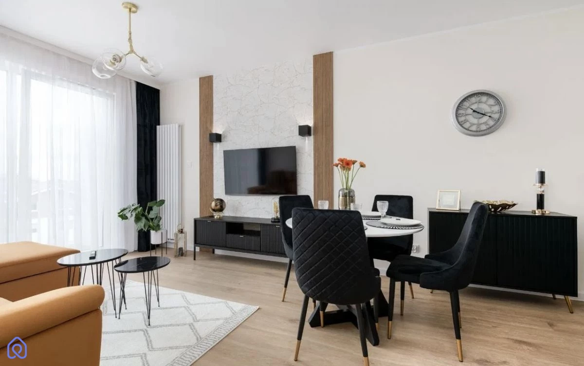 Mieszkanie znajduje się na czwartym piętrze sześciokondygnacyjnego budynku wyposażonego w cichobieżne windy, który został oddany do użytku w 2023 roku. Mieszkanie wykończono przy użyciu wysokiej jakości materiałów. Wszystkie meble znajdujące się w nieruchomości zostały wykonane według indywidualnego zamówienia.