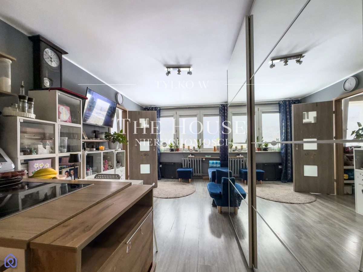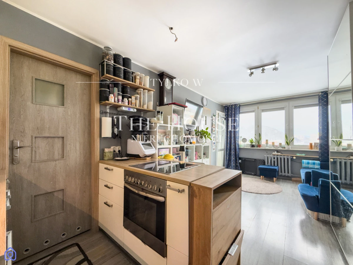 Mieszkanie o powierzchni 27,39 m² znajduje się na 8. piętrze w budynku z 1975 roku, z windą. Zachodnia ekspozycja oraz duże przeszklenia zapewniają bardzo dobre doświetlenie wnętrza i panoramiczny widok, który zmienia charakter przestrzeni, na prywatny "punkt widokowy".