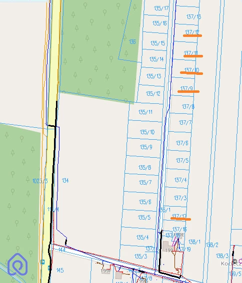 Pozostałe działki są powierzchni od 1021 do 1023 m2, szerokości 28 m i długości 37m.