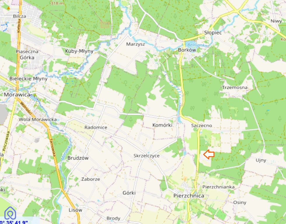 Działki położone są w Gminie Daleszyce, w miejscowości Szczecno Kocieczyn.