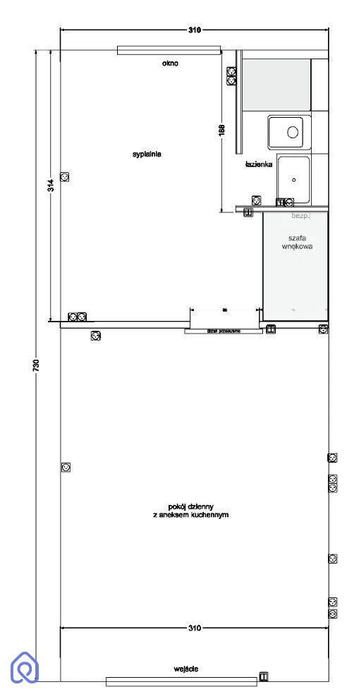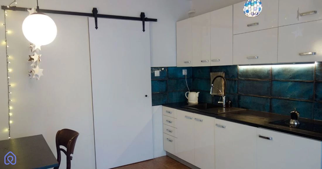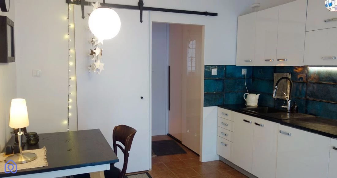 Lokal został zaadaptowany z lokalu usługowego i urządzony z myślą o wygodzie codziennego życia – pomimo niewielkiego metrażu, wnętrze jest dobrze rozplanowane i zapewnia komfortowe warunki do zamieszkania. W przedpokoju znajduje się pojemna szafa wnękowa, która pomieści wszystkie niezbędne rzeczy, w tym sprzęty gospodarcze.