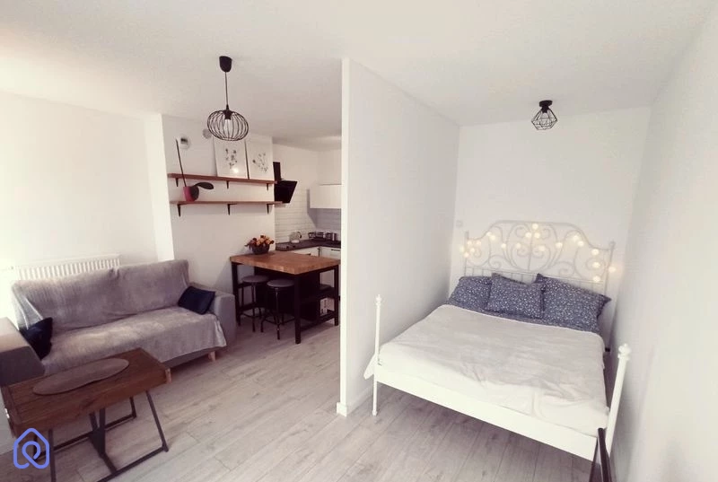 Powierzchnia mieszkania wynosi 32 m², a znajduje się na trzecim piętrze budynku.Układ mieszkania obejmuje salon z aneksem kuchennym, łazienkę, oddzielną sypialnię oraz garderobę, a także balkon.W salonie znajduje się rozkładana sofa, stolik kawowy, szafka pod telewizor i telewizor.Kuchnia jest kompleksowo wyposażona, włączając w to lodówkę, płytę grzewczą, piekarnik i wyspę kuchenną.Łazienka wyposażona jest w kabinę prysznicową, pralkę oraz praktyczną szafkę.W garderobie znajduje się duża szafa na ubrania, a w sypialni komfortowe podwójne łóżko.Osiedle jest otoczone zielenią i wyposażone w monitoring, co zwiększa poczucie bezpieczeństwa.Mieszkanie jest ogrzewane przy pomocy ogrzewania miejskiego.Doskonała lokalizacja - zaledwie 100 metrów od przystanku tramwajowego, a spacerem można dotrzeć do Rynku w zaledwie 25 minut. Bliskość stacji kolejowej Mikołajów i różnych linii tramwajowych (3, 5, 10, 20, 23, 33) ułatwia komunikację.Centrum handlowe Magnolia znajduje się zaledwie 300 metrów od mieszkania, a dworzec PKP jest oddalony o 3 kilometry, a Ryneczek o 2 kilometry (5 minut tramwajem). Dodatkowo, w odległości 3 kilometrów znajduje się galeria handlowa Wroclavia.To mieszkanie jest doskonałą propozycją zarówno dla inwestorów, którzy mogą kontynuować wynajem z obecnym najemcą, jak i osób poszukujących komfortowej przestrzeni mieszkalnej w centralnej lokalizacji.