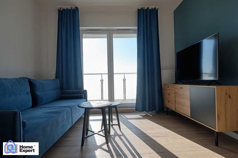 Mieszkanie ma powierzchnię 35m2, składa się z salonu z aneksem kuchennym (w pełni wyposażony), sypialni, łazienki i dużego balkonu (9m2) z bardzo ładnym widokiem).
