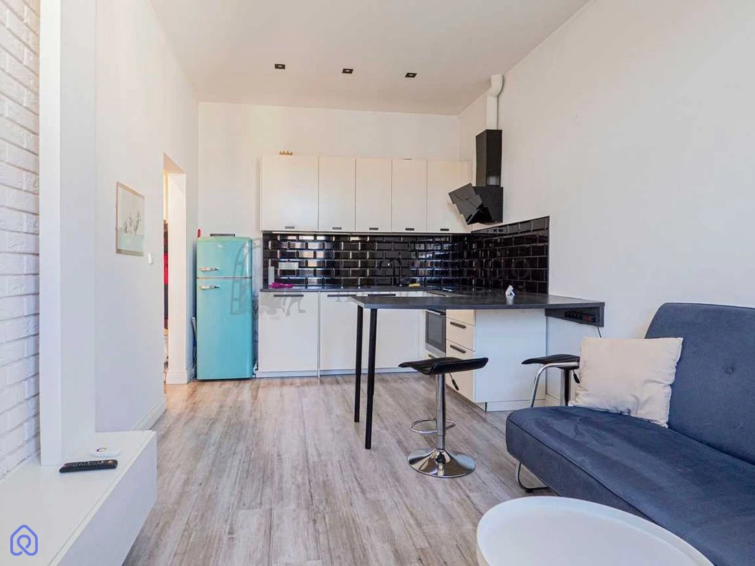 Mieszkanie składa się z dwóch pokoi, które oferują idealne warunki do wypoczynku oraz pracy. Nowoczesny aneks kuchenny stanowi funkcjonalne połączenie z przestrzenią dla gości, co sprzyja przyjemnym spotkaniom towarzyskim. Wysokie sufity oraz duże okna doświetlają wnętrze, tworząc przytulną atmosferę.