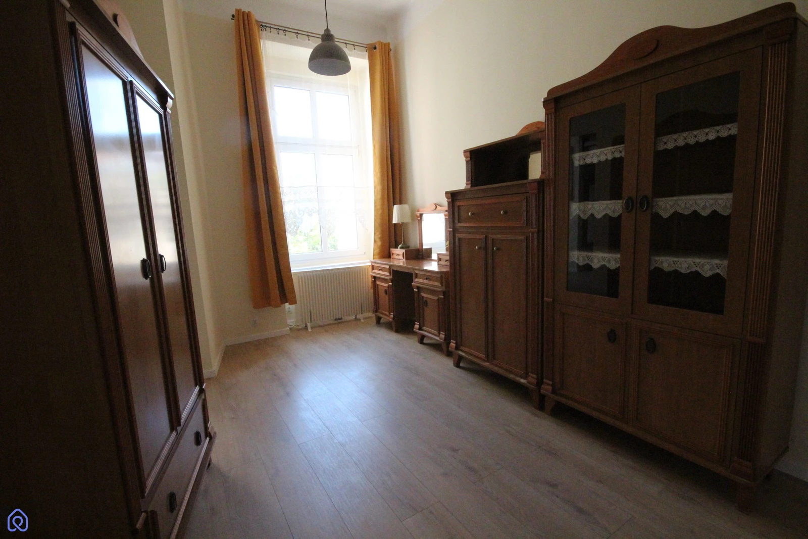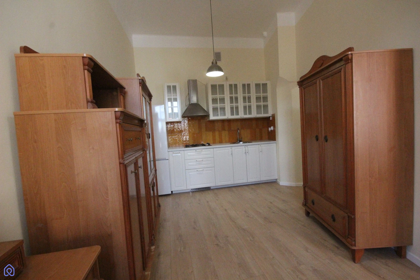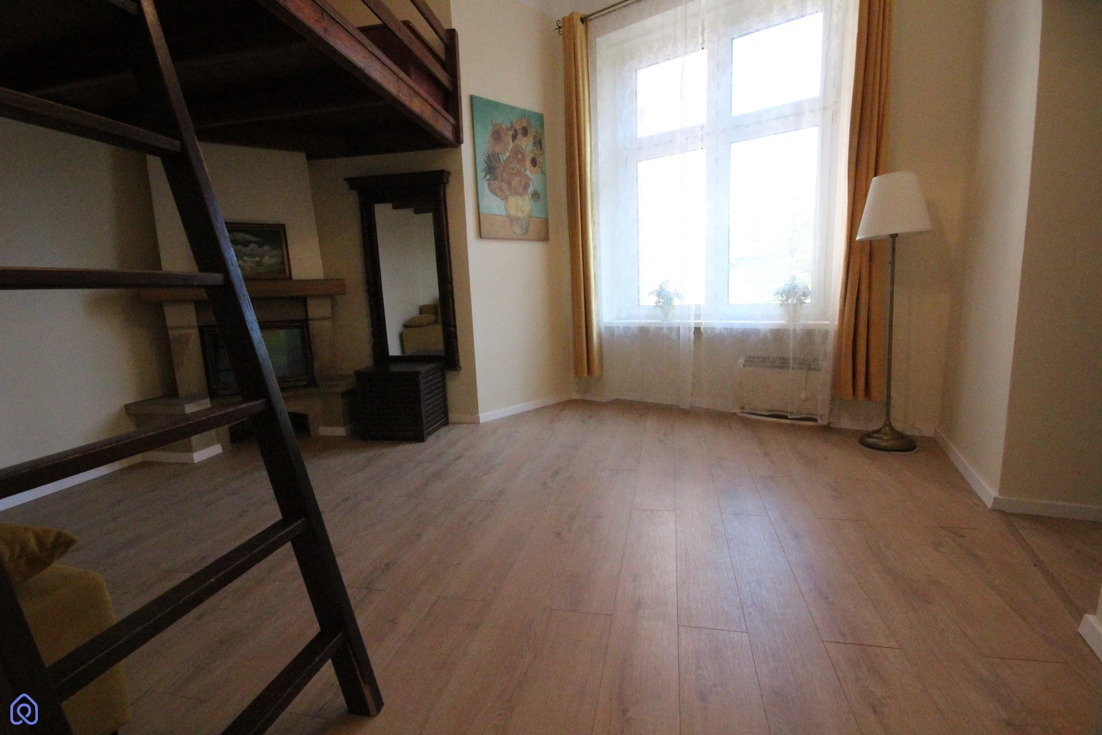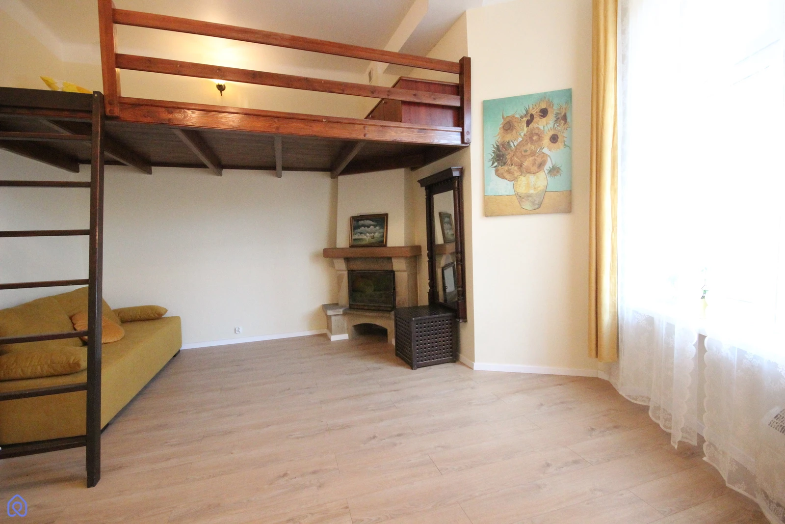 Klimat. Mieszkanie jest niezwykłe, o przedwojennym charakterze: wysokość 3,45 m, okna o wysokości ponad 2 m, kominek z naturalnego piaskowca i granitu (sprawny, obecnie nieużywany), antresola z litego drewna, ozdobne karnisze i koronkowe firanki.