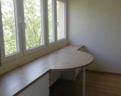 Mieszkanie składa się z dwóch pokoi, kuchni, łazienki i małego przedpokoju; duży pokój jest przejściowy do pokoju mniejszego (z balkonem) oraz do kuchni.