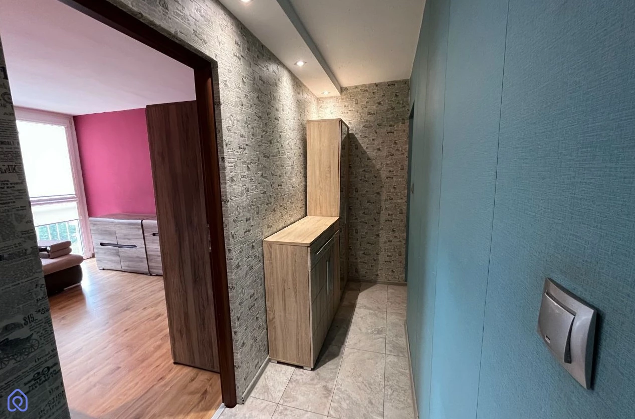 Do wynajęcia mieszkanie: Dwa pokoje, kuchnia, łazienka, przedpokój o powierzchni 37 m2 + piwnica 1,95 m2.