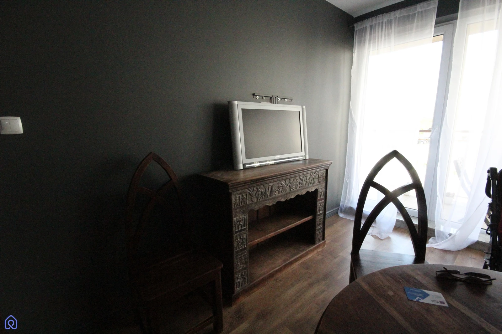 W mieszkaniu są oryginalne, indyjskie meble (lite drewno), elektrycznie sterowane rolety antywłamaniowe.