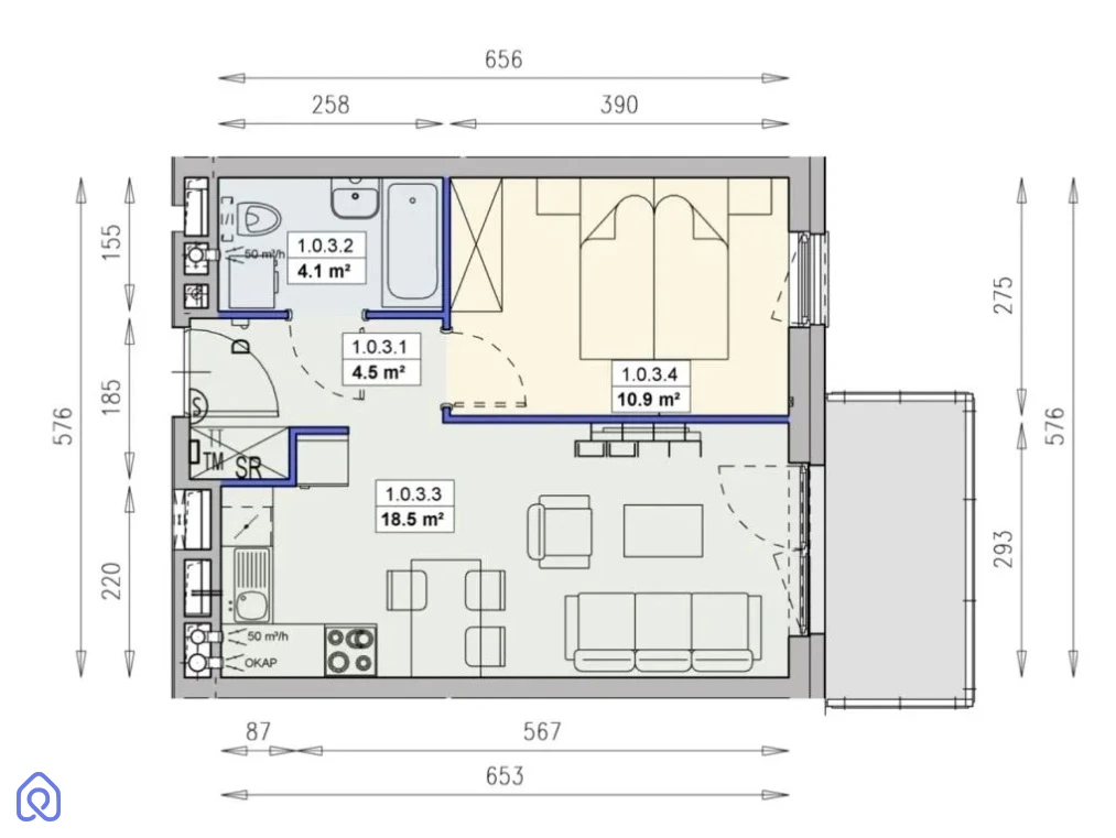 38 m² | Olimpia Port | 2 pokoje | Parking