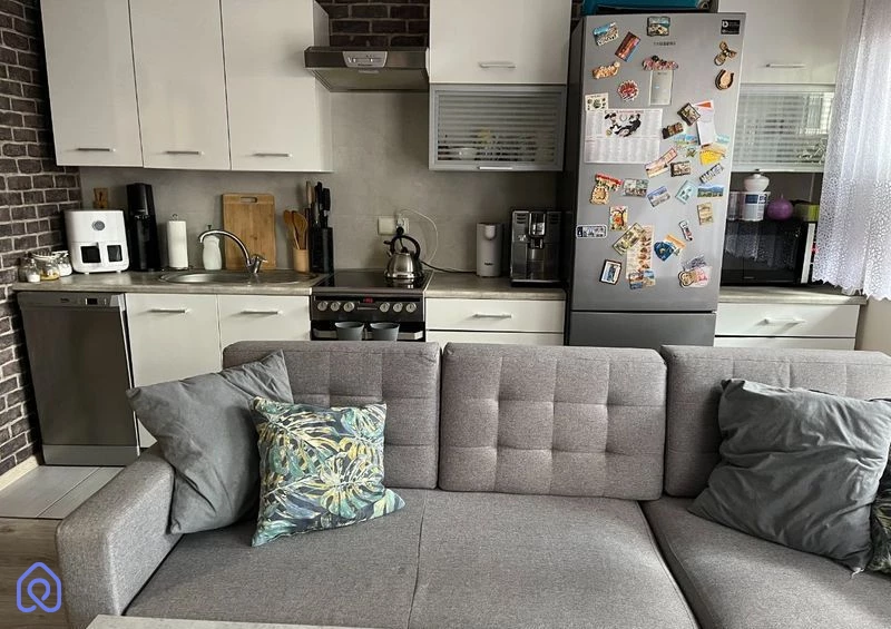 Salon z aneksem kuchennym o powierzchni 18,66 m2