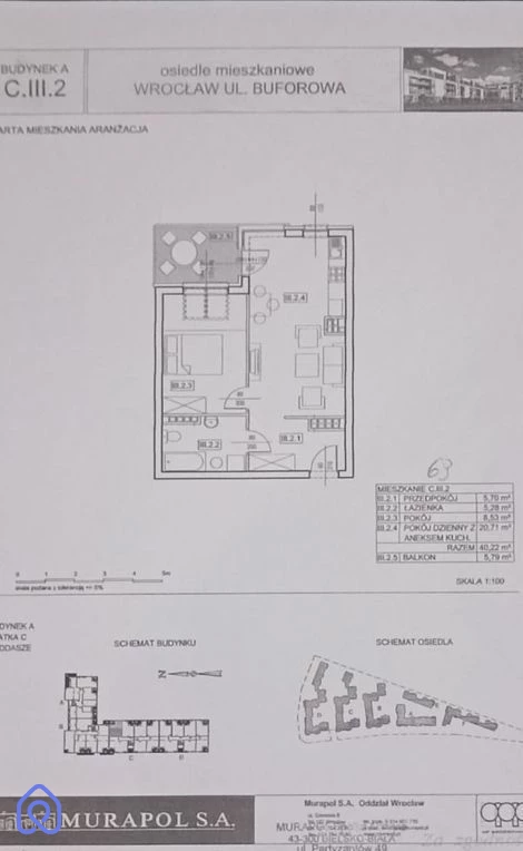 Z radością prezentuję Państwu mieszkanie o powierzchni 40,26 m² położone na 3 piętrze w bloku na zamkniętym i monitorowanym osiedlu MAŁA TOSKANIA na Krzykach Jagodno. To doskonała oferta dla osób poszukujących gotowego do zamieszkania lokum w spokojnej i dobrze skomunikowanej okolicy. Oto kluczowe informacje: