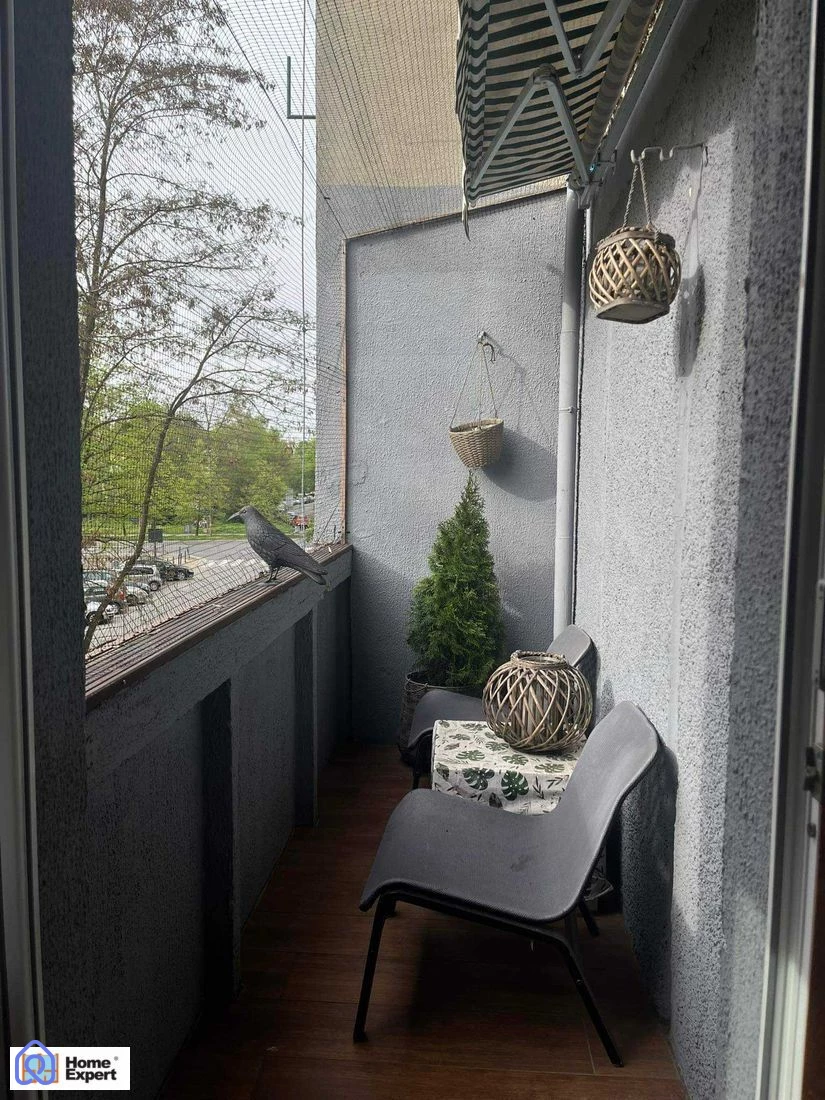 dobrana kolorystyka wnętrz wpływa na przyjemną atmosferę. Dodatkowo, balkon stanowi