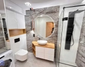 Mieszkanie bardzo starannie wykończone oraz zaaranżowane z przemyślaną konsekwencją kolorystyczną, materiałami wysokiej jakości.