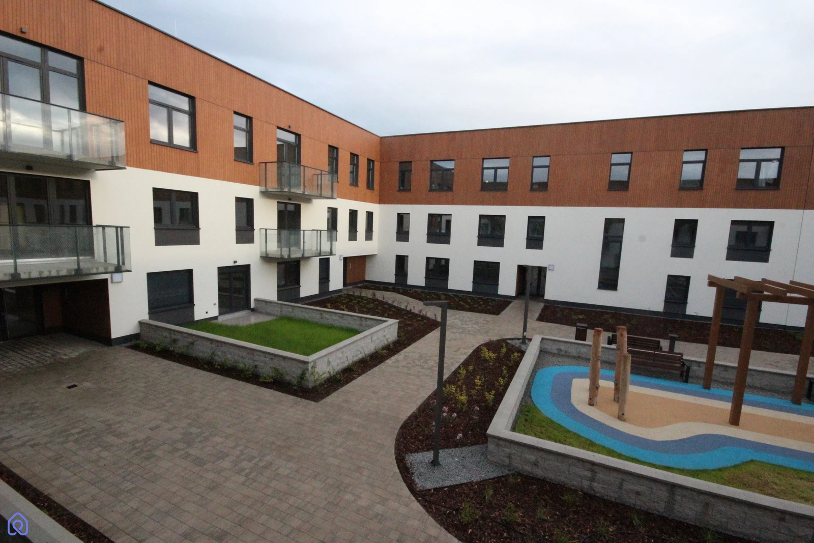 Do dyspozycji mieszkańców wózkownia, rowerownia, place zabaw z zielonymi pergolami i ławkami z możliwością solarnego ładowania telefonów.