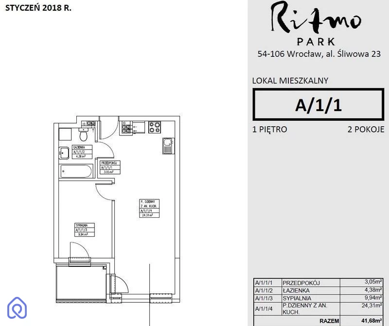 Powierzchnia 41,7 m2