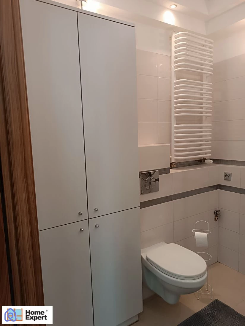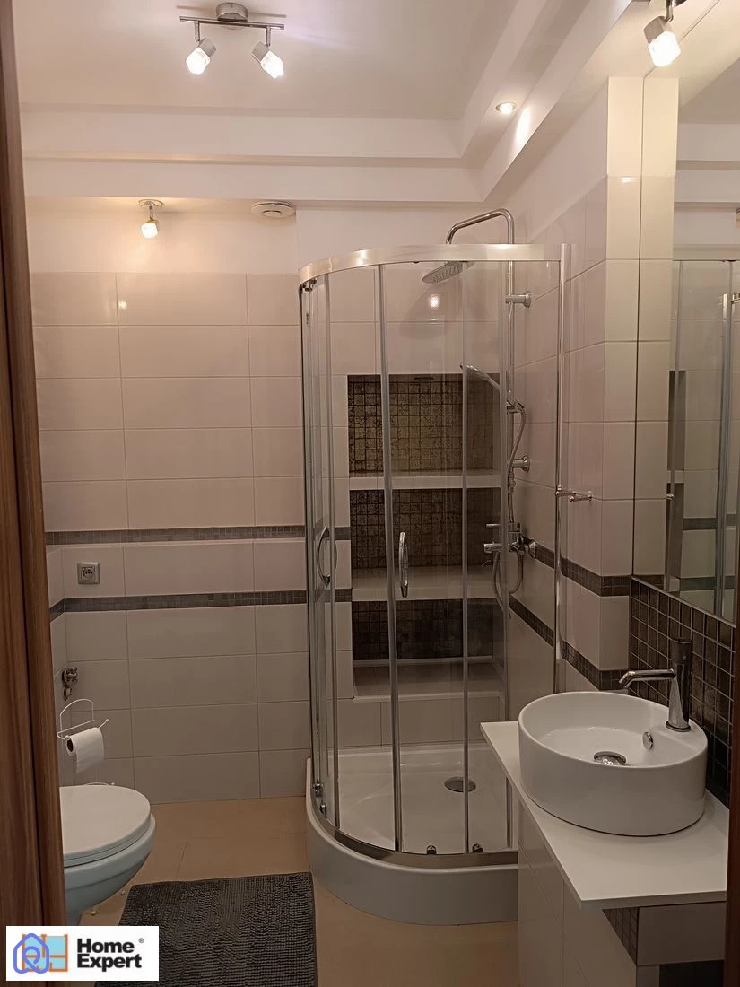 -Łazienka – wykończona według projektu architekta z sufitem w systemie 3D , oświetleniem halogenowym, duża szafa dwudrzwiowa na chemię, kosmetyki. Na podłodze gres hiszpański, biała ceramika, kabina prysznicowa. Elementami ozdobnymi są dekory łazienkowe z połyskiem. Nad umywalką wbudowane lustro z oświetleniem.