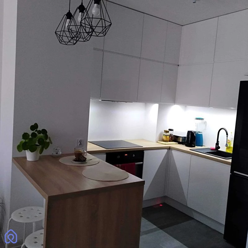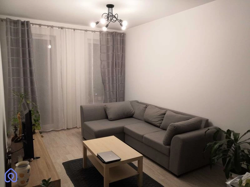 Mieszkanie jest gotowe do zamieszkania, już umeblowane: narożnik z funkcją spania, 2 szafy wnękowe, łóżko 2 osobowe, meble kuchenne, lodówko-zamrażarka, zmywarka, płyta 4-palnikowa indukcyjna, pralka. Dodatkowo, już zainstalowany jest Internet i przyłącze telewizyjne.
