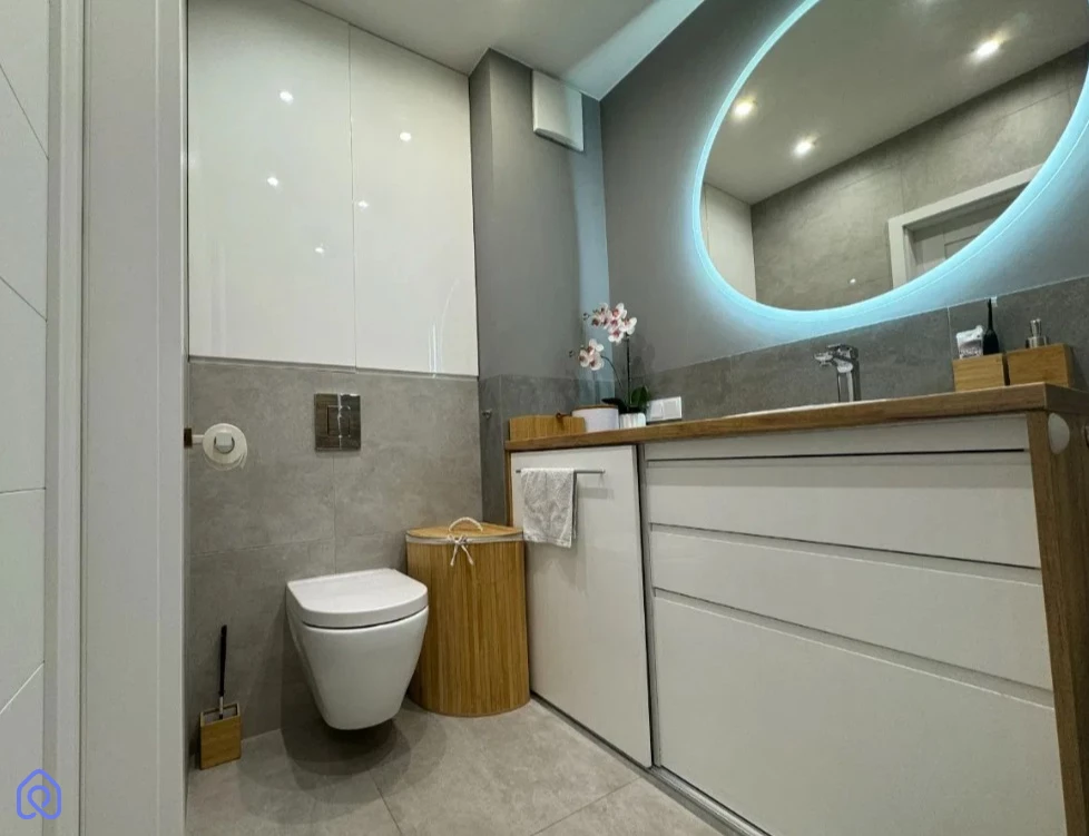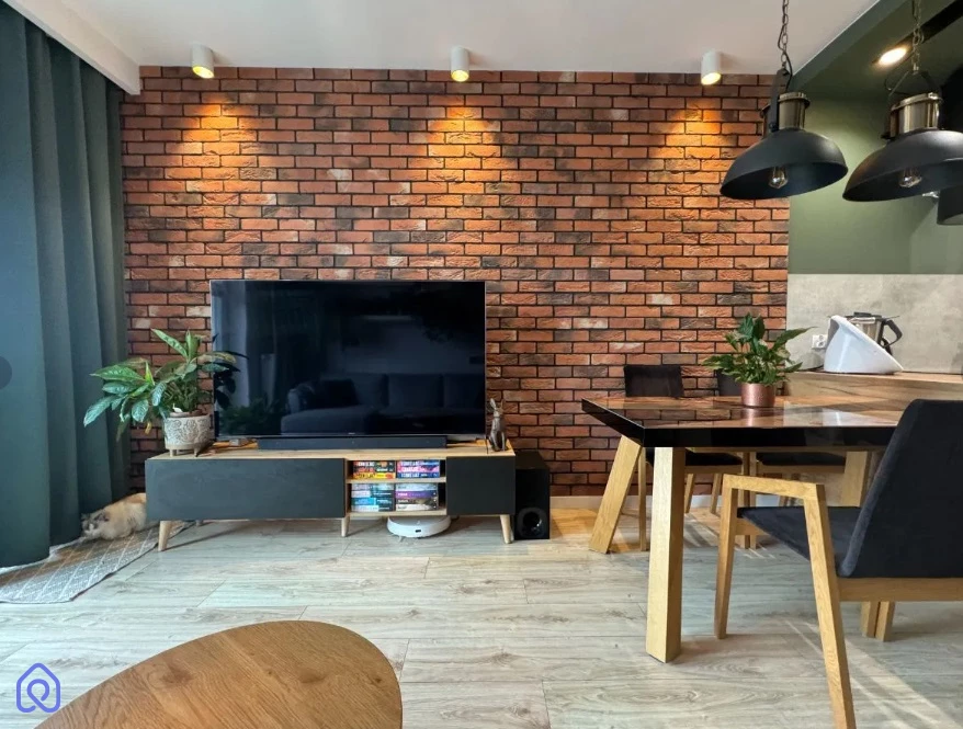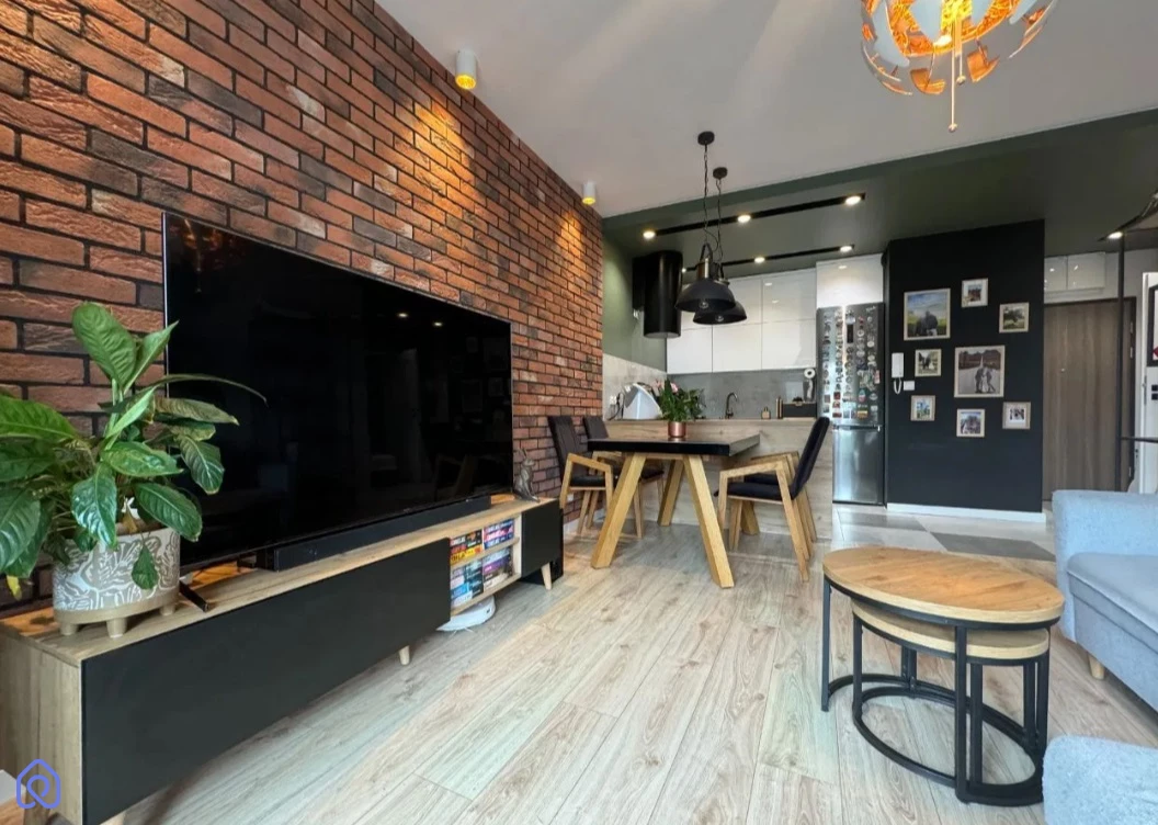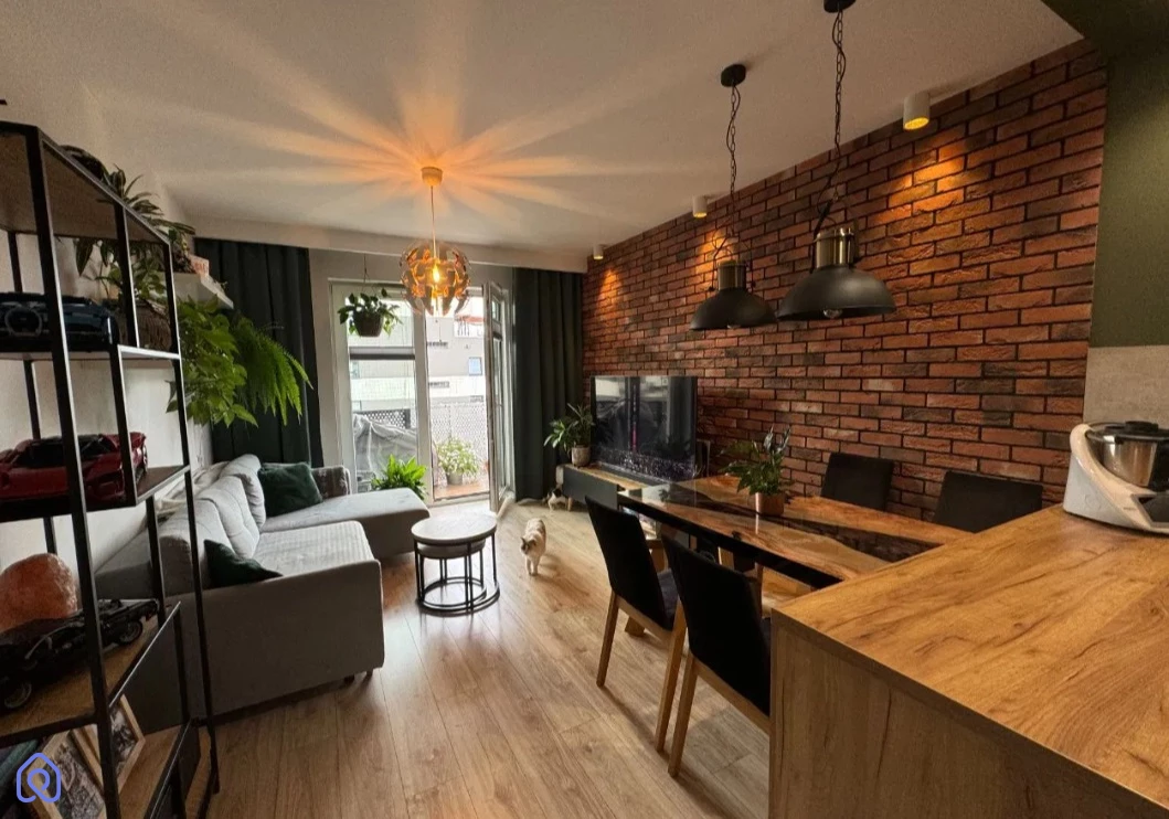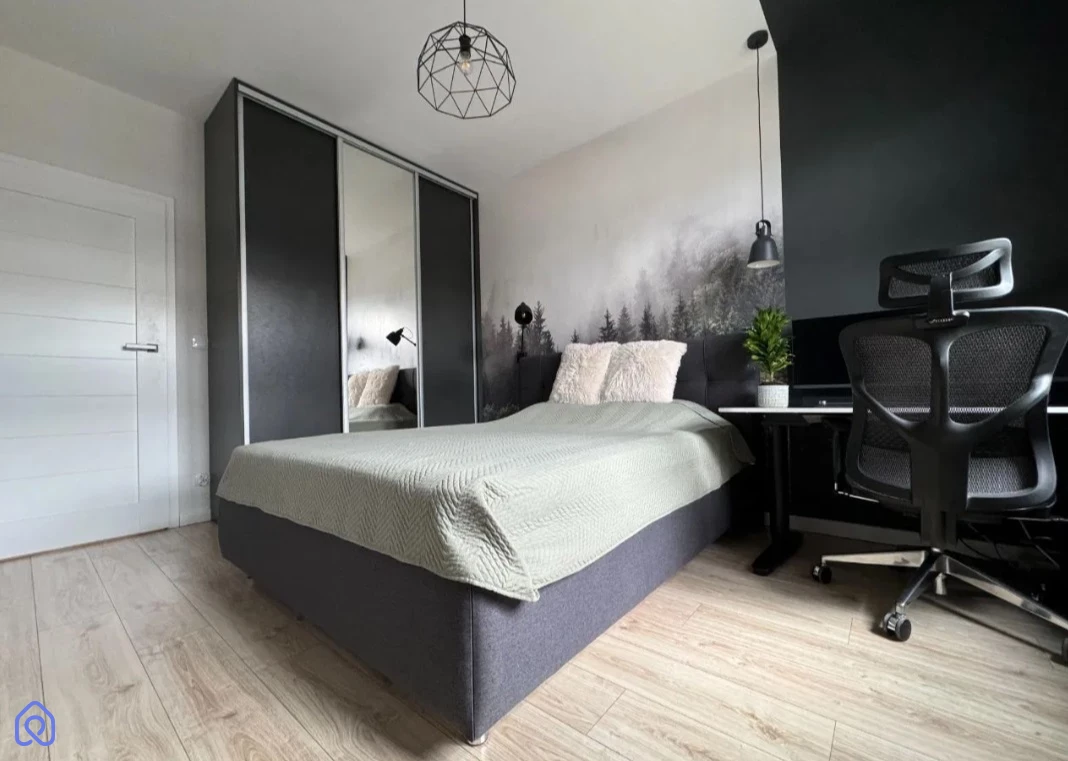 Mieszkanie jest nowoczesne i funkcjonalnie urządzone. Salon połączony z aneksem kuchennym, w pełni wyposażonym w meble robione na wymiar, oferuje dużo przestrzeni do przechowywania. W sypialni znajduje się wygodne łóżko z pojemnikiem oraz zabudowana szafa. Łazienka jest praktyczna, z wanną/prysznicem i zabudowanymi szafkami. Przestronny przedpokój oferuje dodatkowe miejsce do przechowywania.