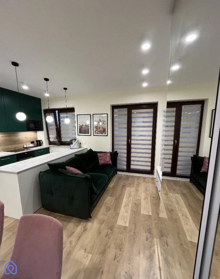Mieszkanie o powierzchni 45 m2.W październiku 2022 roku przeszło generalny remont, obejmujący nową instalację elektryczną, hydrauliczną oraz wymianę kaloryferów. .Mieszkanie zostało urządzone przez projektantkę wnętrz, aby optymalnie wykorzystać dostępną przestrzeń.Zabudowa w salonie, kuchni, przedpokoju i łazience wykonana na wymiar, co nadaje wnętrzu unikalny charakter.Czynsz przy 4 osobach wynosi 700 zł plus prąd.Do mieszkania przynależy duża komórka lokatorska (6,3 m2) oraz osobne miejsce postojowe w hali garażowej. Cena za całość dodatkowo to 60 000 zł.