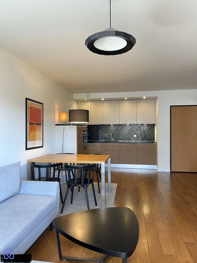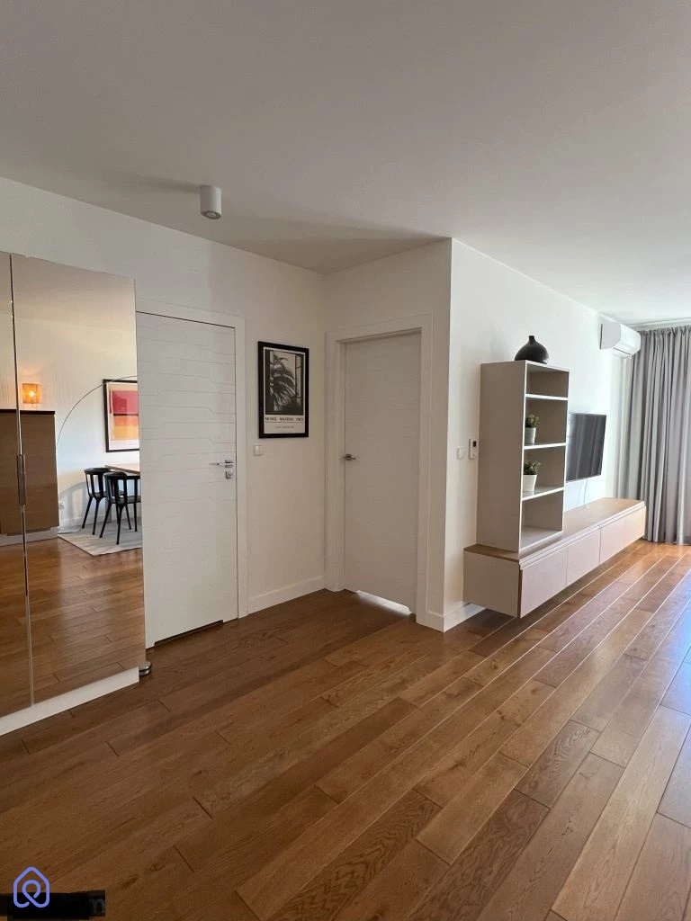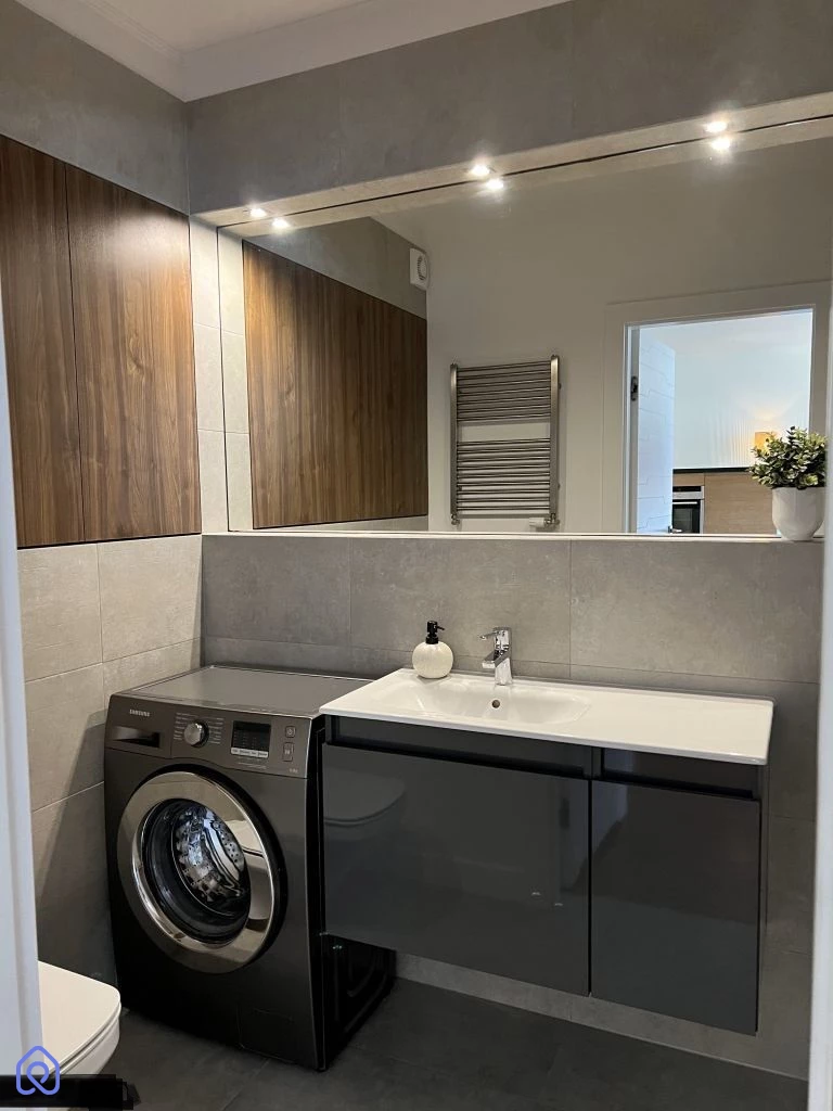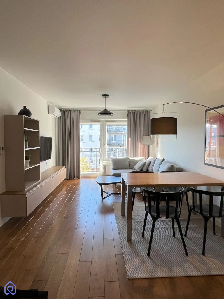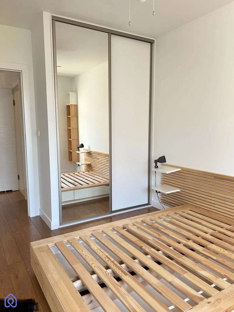 Mieszkanie wykończone w wysokim standardzie – drewniana podłoga, meble na wymiar wykonane przez stolarza, klimatyzacja. W pełni wyposażone w niezbędne sprzęty AGD i RTV, m.in. lodówka, płyta indukcyjna, piekarnik, zmywarka, pralka, odkurzacz, TV. W sypialni wygodne łóżko z materacem o wymiarach 140x200 cm oraz roleta zaciemniająca, idealna do komfortowego wypoczynku.