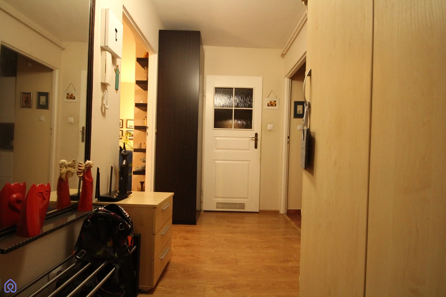 Przy drzwiach wejściowych znajduje się duża szafa na wymiar, do której można schować kurtki czy buty.
