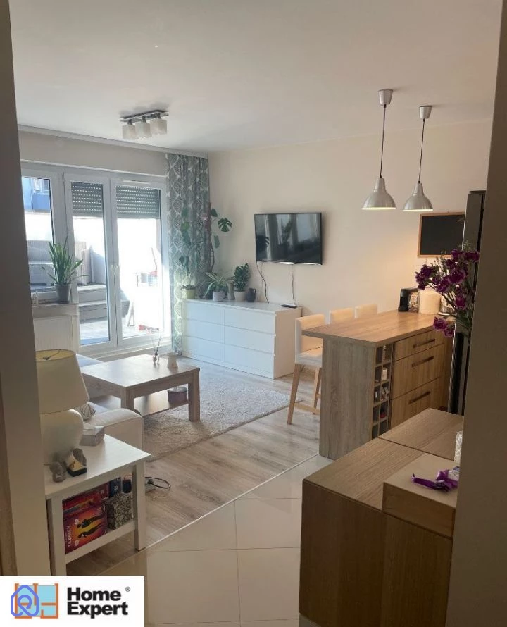 Mieszkanie jest ciche i jasne, w pełni umeblowane.