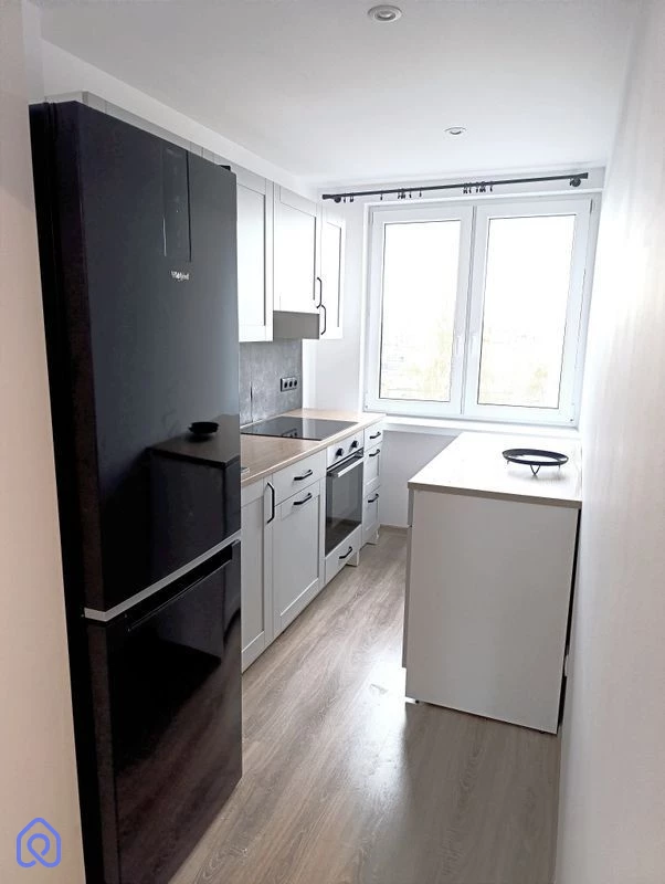 Mieszkanie zostało wyposażone w nowoczesne urządzenia AGD, w tym piekarnik, płyta kuchenna, lodówka oraz pralka, zapewniając pełną funkcjonalność i komfort codziennego życia.