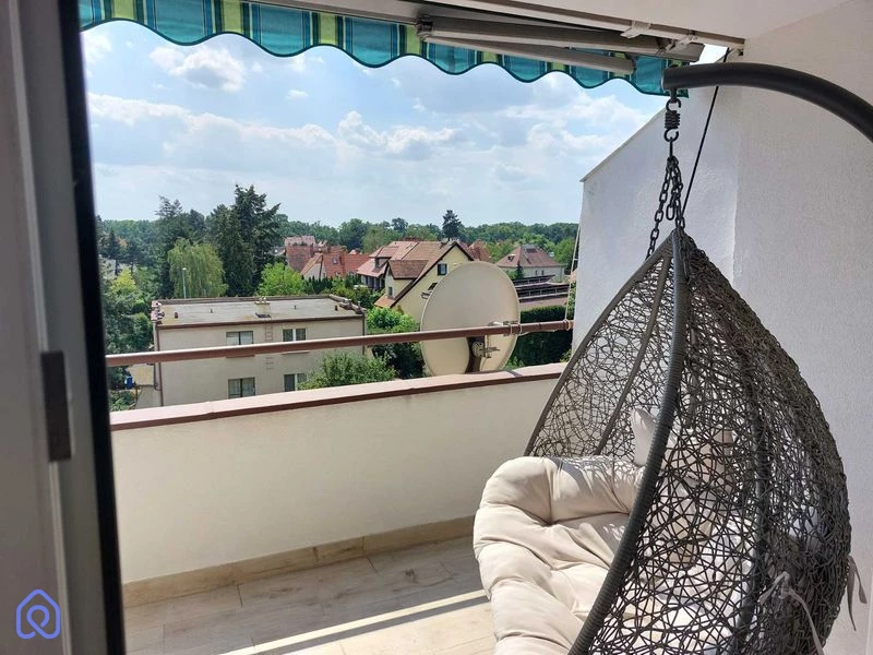Mieszkanie o powierzchni ok. 20 m2 aktualnie skonfigurowane jako dwupokojowe, z ogromną sypialnią.Możliwość łatwej i ekonomicznej przearanżacji na mieszkanie 3-pokojowe poprzez podzielenie sypialni na dwie mniejsze pomieszczenia, z dużym oknem w każdym z pokojów.Dwustronna ekspozycja okien (północ-południe), pełne umeblowanie i wyposażenie, gotowe do natychmiastowego zamieszkania.Dwa balkony, w tym jeden duży (ponad 6 m2) z widokiem na spokojne osiedle domków jednorodzinnych oraz park.