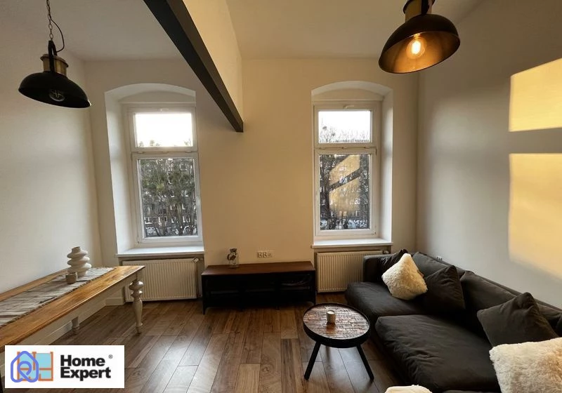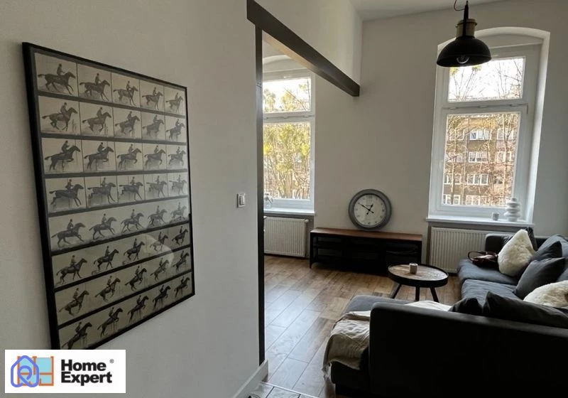 Mieszkanie znajduje się na drugim piętrze w budynku z lat 50tych. 49 metrowy lokal składa się z dwóch pokoi rozkładowych, bardzo jasnej kuchni, sporego korytarza i łazienki z wanną i toaletą. Do lokalu przynależy również piwnica. Mieszkanie wyposażone jest w okna z PCV, kafle podłogowe w kuchni i w łazience znajdują się kafle, oraz parkiet i panele w pokojach. Okna wystawione są na południowy-wschód i północ. Wszystkie media, tj. gaz, ciepła woda i ogrzewanie są mediami miejskimi. Mieszkanie znajduje się w miejscu świetnie skomunikowanym z centrum Wrocławia. W najbliższej okolicy znajduje się przystanek autobusowy i tramwajowy- dojazd do centrum ok. 10/15 min. Mieszkanie znajduje się obok parku z placami zabaw i stawem, w okolicy są również przedszkola, szkoły podstawowe, a także obiekty Politechniki Wrocławskiej (Wydział Architektury), Uniwersytetu Przyrodniczego i Akademii Medycznej. 10- minutowy spacerkiem można dojść do Ogrodu Botanicznego, a w 15 minut do Parku Szczytnickiego.
