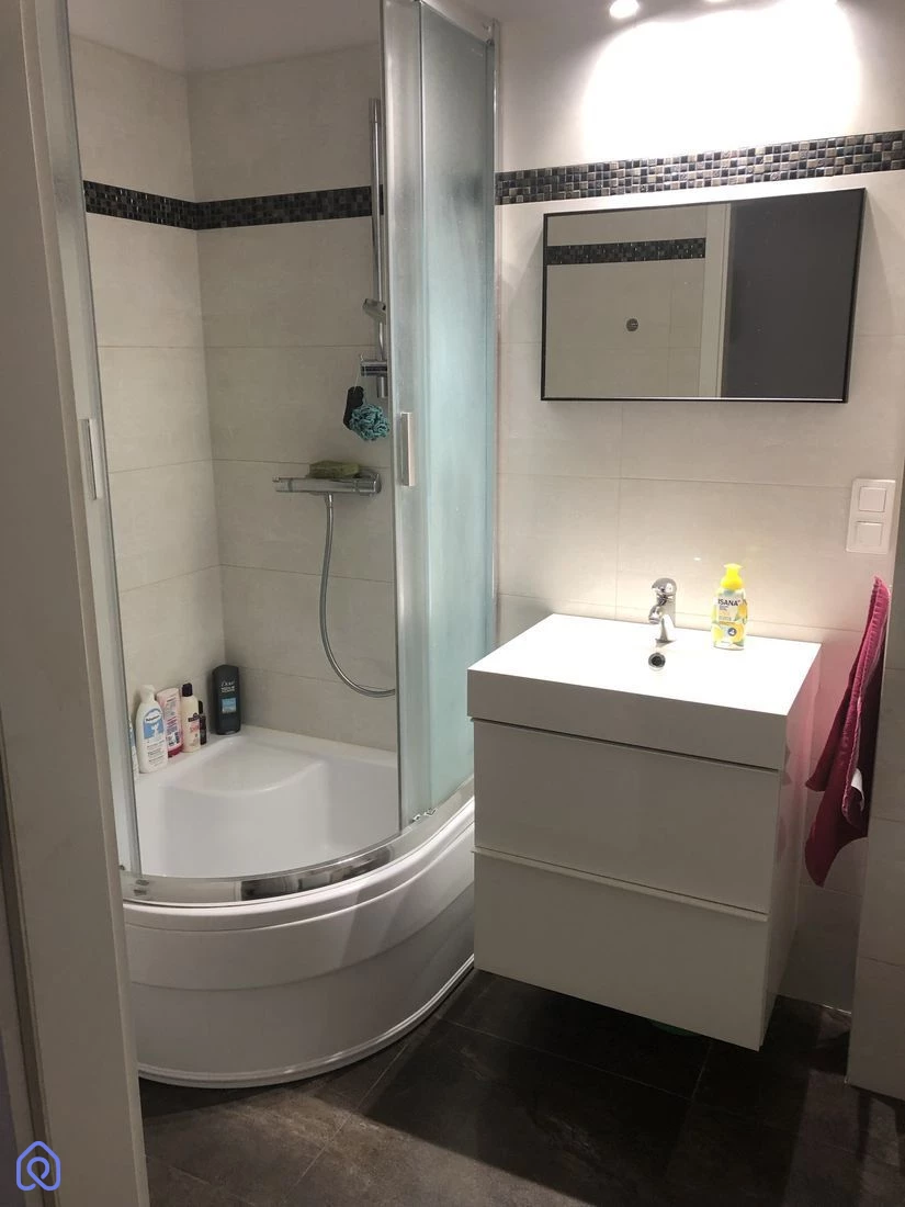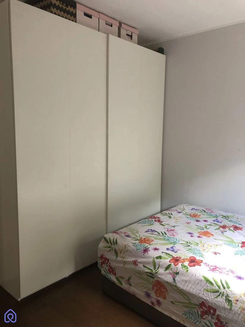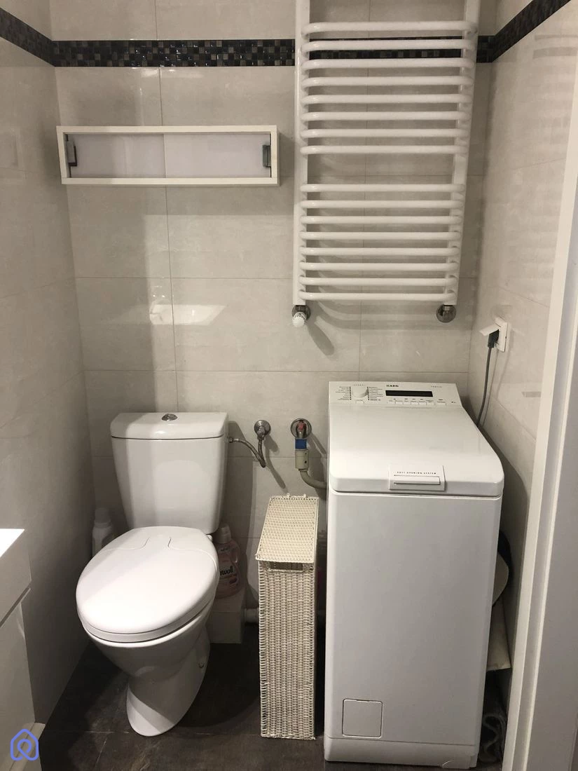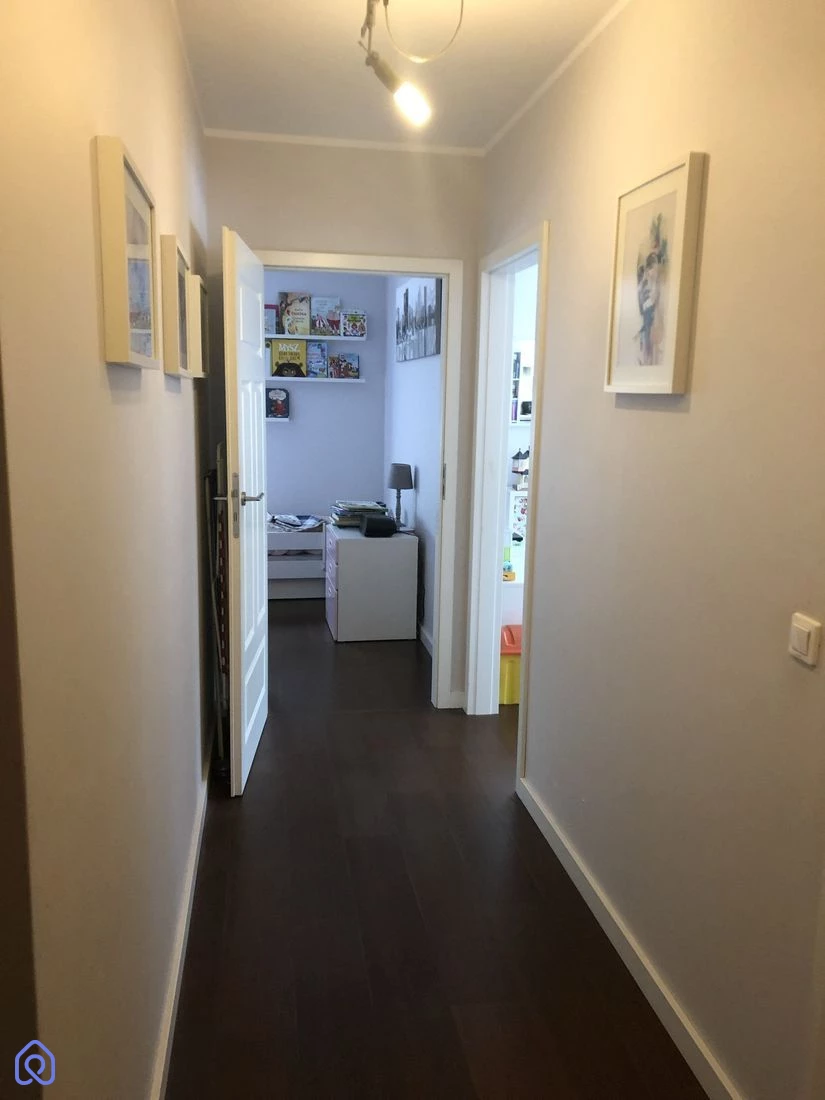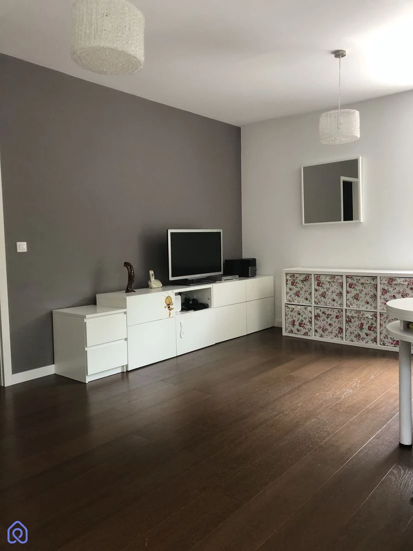- Salon z aneksem kuchennym – przestronny, o powierzchni ok. 27 m². Wyposażony w narożnik, regał na książki, szafkę RTV oraz komodę Malm. - Sypialnia – ok. 10 m², z wygodnym łóżkiem o szerokości 140 cm oraz szafą Pax, oferującą sporo miejsca na przechowywanie. - Przedpokój – funkcjonalny, o powierzchni ok. 8 m², długi, zapewniający prywatność przy wejściu do mieszkania. Świetnie nadaje się też do zabawy, np. gry w piłkę! Znajdziesz tu również komodę na buty oraz szafę w zabudowie. - Łazienka – 3,5 m² z głębokim brodzikiem i prysznicem, pralką oraz praktycznymi szafkami na kosmetyki i środki czystości.