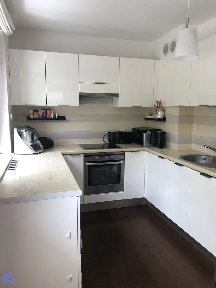 - Mieszkanie jest bardzo słoneczne i dobrze ustawne. - Widok na zieleń z każdego okna, co daje poczucie spokoju i relaksu. - W salonie klimatyzacja, dzięki której nawet latem mieszkanie pozostaje przyjemnie chłodne. - Kuchnia na wymiar z nowoczesnym sprzętem: piekarnik, płyta indukcyjna, zmywarka i duży blat roboczy, który idealnie sprawdza się podczas gotowania. Jesienne widoki z okna umilą każdy posiłek! - Podłoga z drewnianej trójwarstwowej deski Tarkett. - W sypialni zamontowano zaciemniające rolety, aby zapewnić pełen komfort snu. - Większość okien posiada moskitiery robione na wymiar. - Balkon z widokiem na las – idealne miejsce na poranną kawę.