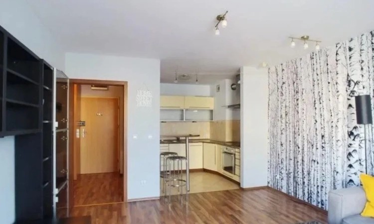 Mieszkanie składa się z salonu z aneksem kuchennym, balkonu (loggi) oraz z sypialni, przedpokoju i łazienki. Jest nowocześnie umeblowane, kuchnia ciekawie zaaranżowana, wyposażona we wszystkie niezbędne sprzęty łącznie ze zmywarką, W łazience kabina prysznicowa i pralka