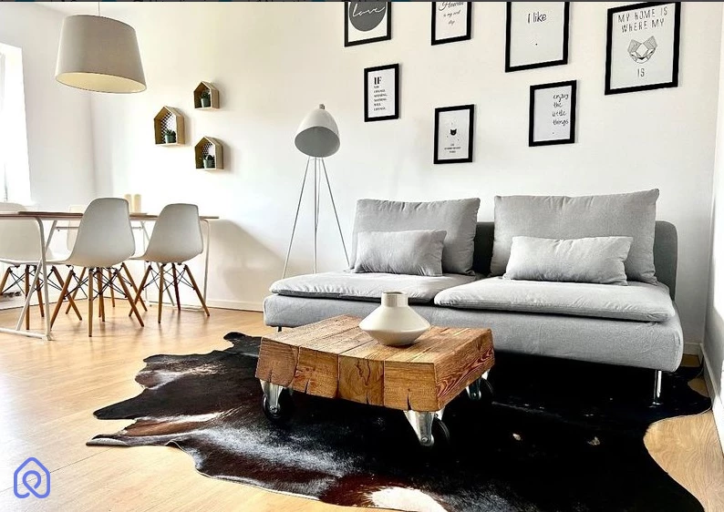 Mieszkanie zostało urządzone w nowoczesnym stylu i w pełni wyposażone.